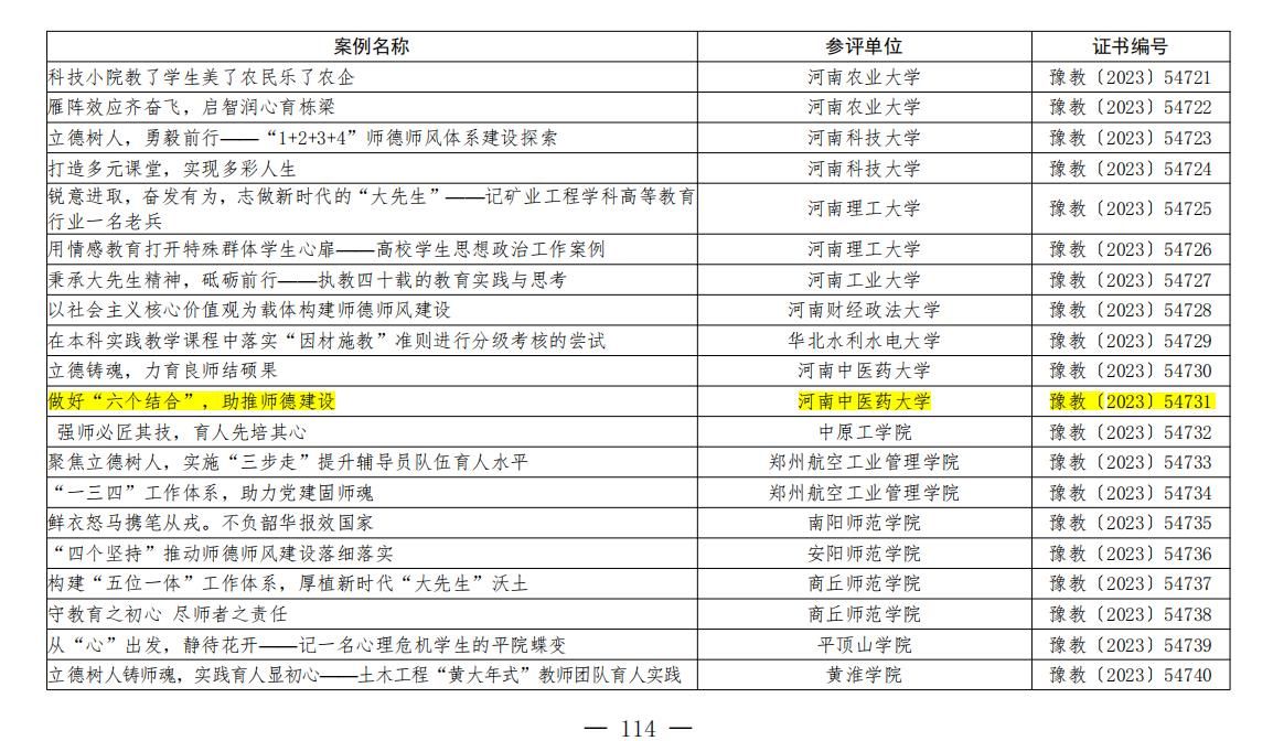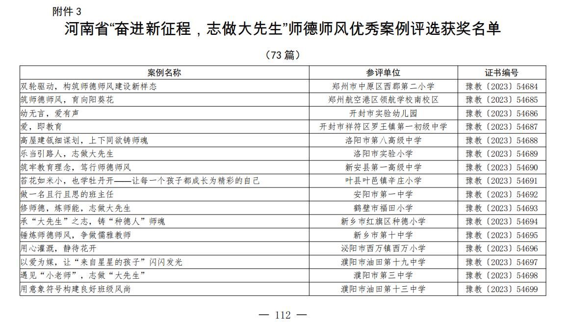 本网讯(文/图 黄璐)日前,河南省教育厅官网发布《关于公布“奋进新征程,志做大先生”师德主题教育征文、演讲比赛和师德师风优秀案例评选结果的通知》,管理学院党委书记段晓鹏撰写的题为《做好“六个结合”,助推师德建设》的师德师风案例获评“师德师风优秀案例”。至此,管理学院成为leyu·乐鱼(中国)体育官方网站唯一一个连续两年获评全省教育系统师德师风优秀案例的部门。