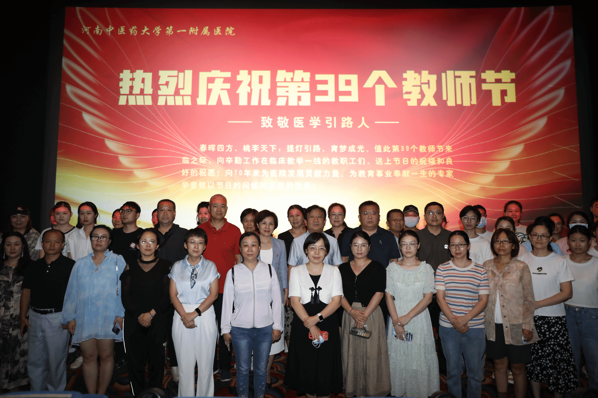本网讯(文/郑金铎 图/李瑞 一附院各科室)芳华守初心,真情育桃李。今年的9月10日,是第39个教师节。为弘扬立德树人、尊师重教氛围,连日来一附院开展系列庆祝活动,向辛勤耕耘、默默奉献的临床教师致敬,激励医院广大教职工牢记为党育人、为国育才的初心使命,潜心教书育人,为中医药教育事业作出更大贡献。