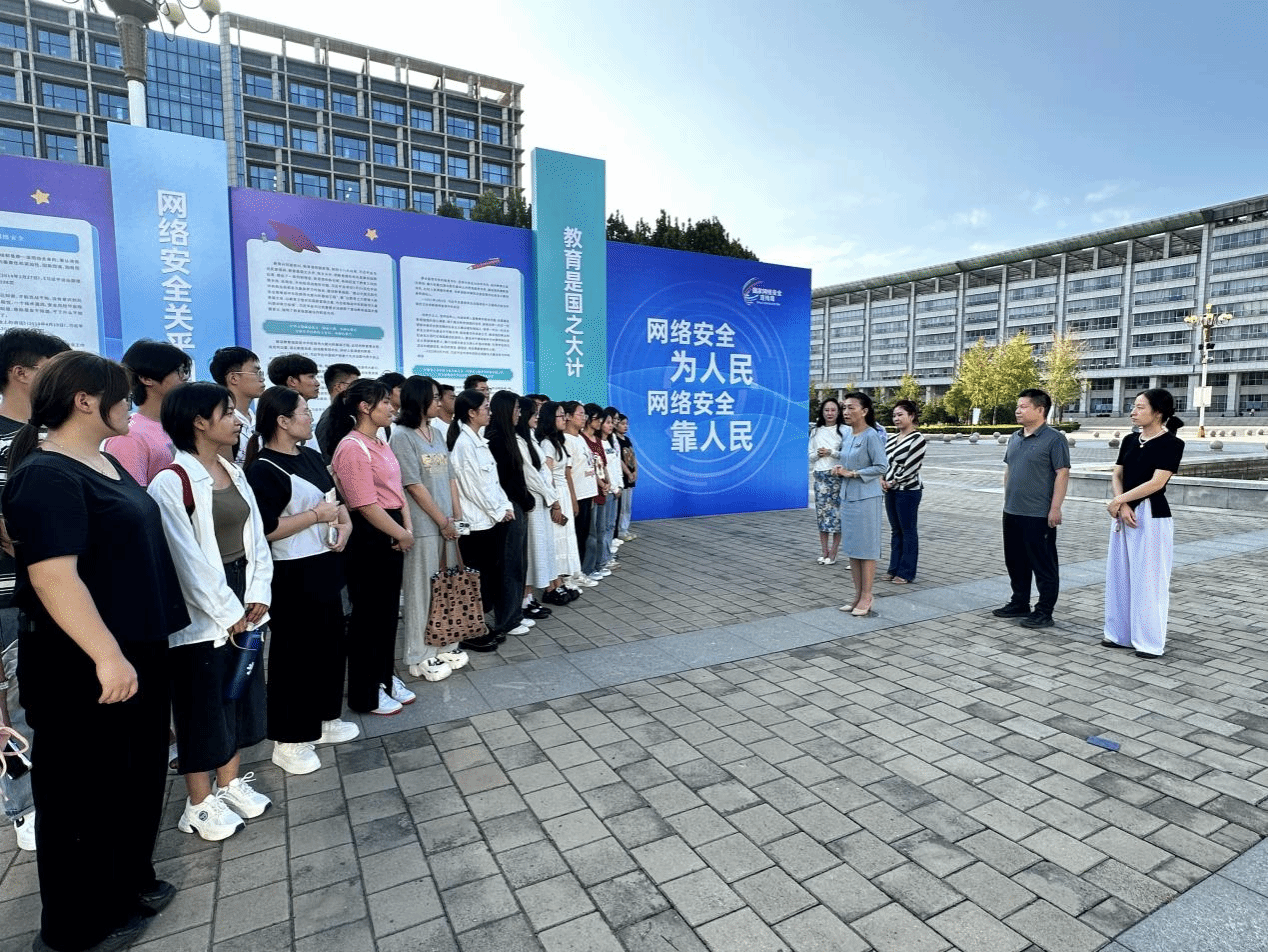 本网讯(文/刘芳菲 图/李新宇)为积极响应国家网络安全宣传周活动,帮助在校生更好地了解和感知身边的网络安全风险,增强网络安全意识,2023年9月13日,医院党委副书记张婉红在五星广场的网络安全宣传展板前,为学生进行网络安全教育专题宣讲,普及网络安全知识,增强安全防范意识。