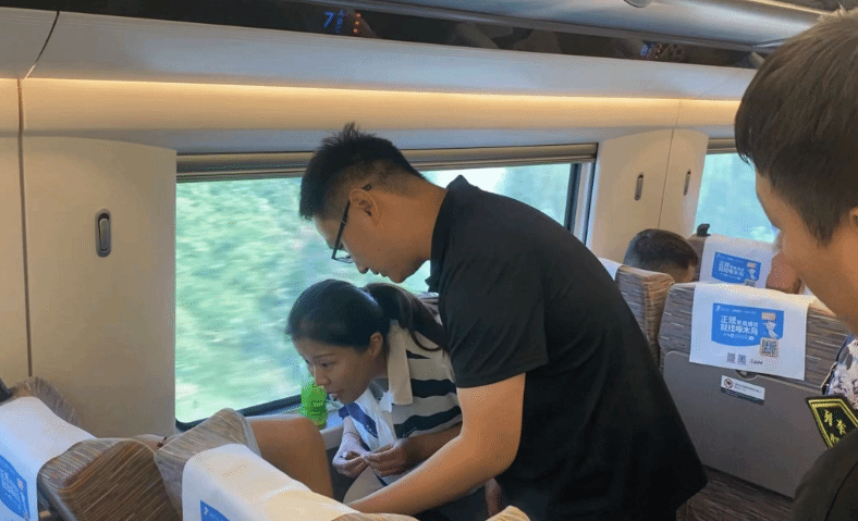 后询问其家属,得知乘客晨起匆忙赶车未服用早餐,冉龙龙告诉其需进食及大量饮水以防止低血容量休克。此时周围乘客迅速拿来食物及饮用水,乘客进食30分钟后头晕及乏力症状消失。此刻车辆也即将抵达乘客目的地商丘站,在列车到站后建议乘客家属将其送往医院进一步检查就医,看到乘客顺利下车,冉龙龙才放心回到自己的座位。