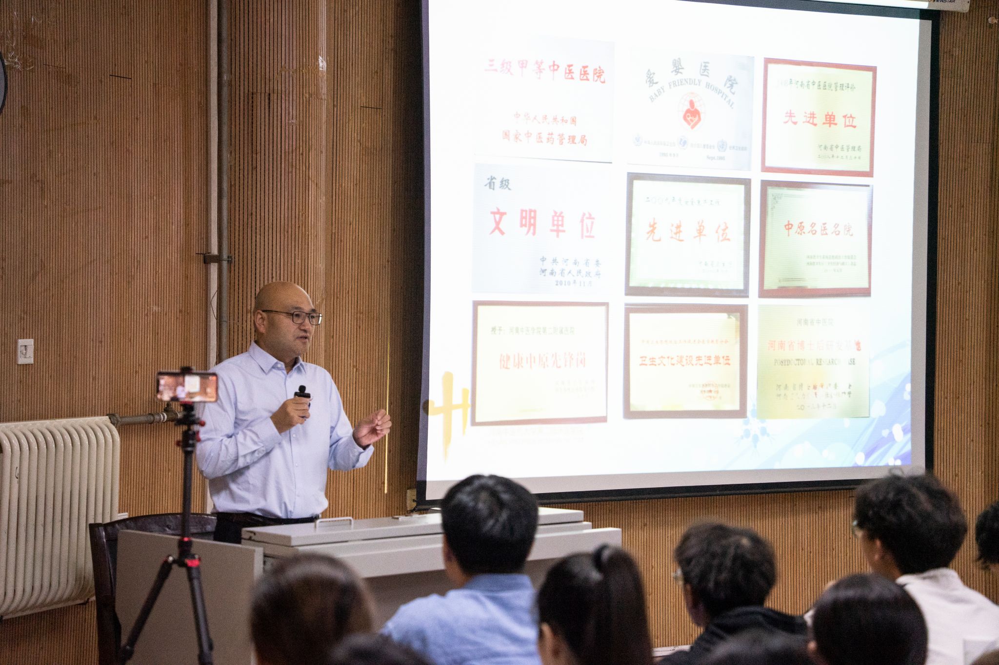 讲座中,张政介绍了针灸推拿学院、第三附属医院的发展历程、目前概况、取得成就和名老中医药专家荟萃、针灸推拿特色鲜明、医教研深度融合等优势特色,引导广大学生树立爱校荣校、爱院荣院观念。在形势政策教育部分,要求同学们认真学习宣传贯彻习近平新时代中国特色社会主义思想,践行社会主义核心价值观,做新时代奋发有为新青年,鼓励大家牢记习近平总书记嘱托,“立鸿鹄志,做奋斗者”,做堪当大任的时代青年。最后,张政祝愿同学们大学生活开好局,谋好篇,好收成!。