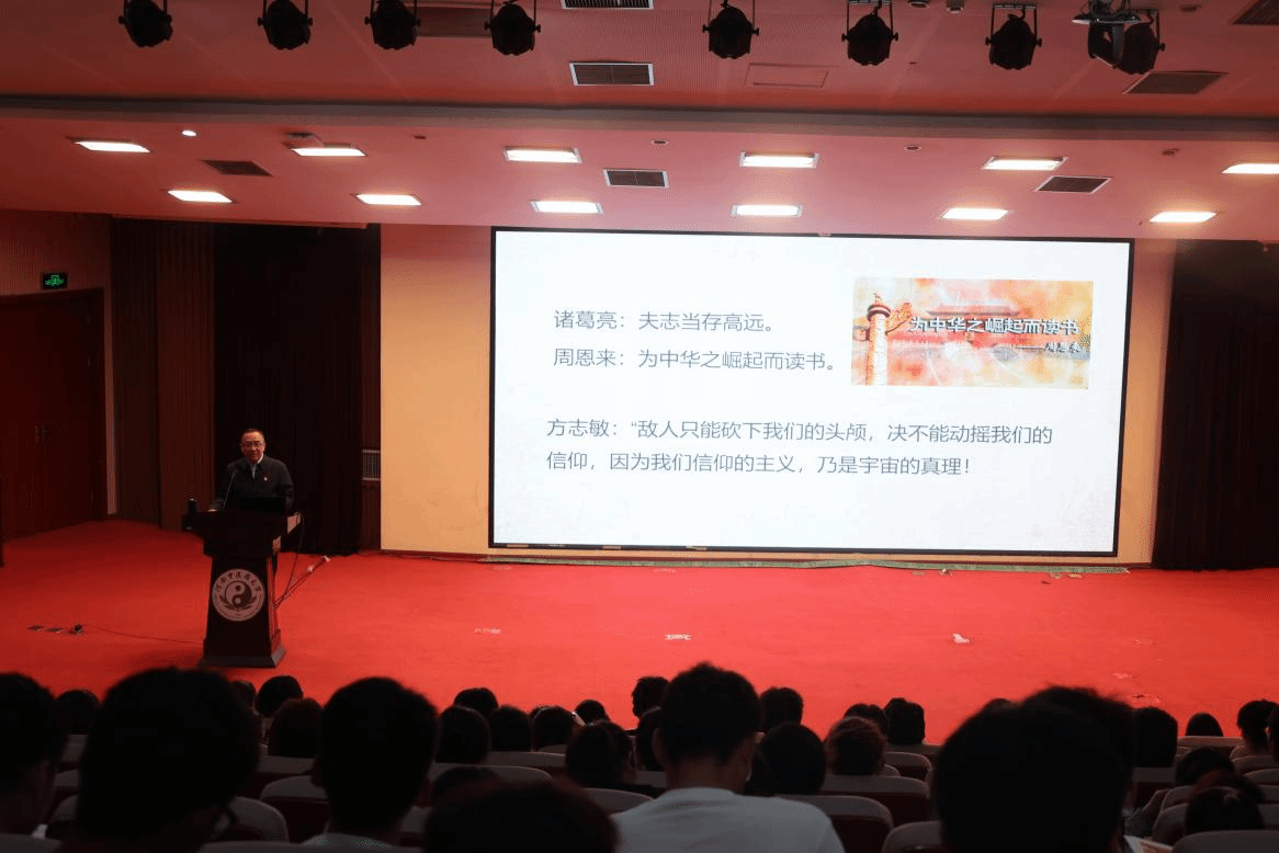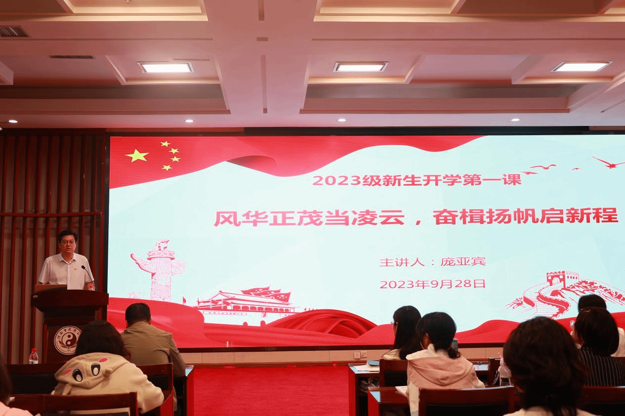 党委副书记徐里以《奋勇前行,做堪当时代重任的青年》为题讲授“开学第一课”。他围绕鉴往知来、立志圣贤、励志成才三方面,并通过对过往之中国、当下之中国、未来之中国的历史回顾和未来畅想,号召全体同学以史鉴今、坚定信念、爱党爱国;以圣明志,传承岐黄、爱校荣校;以勤立学,锤炼本领,堪当大任。