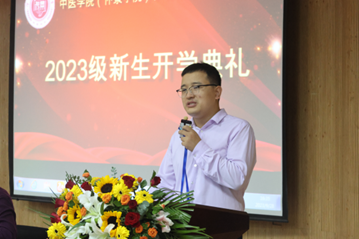 本网讯(文/段智丹 图/武雪凡)金秋九月,丹桂飘香。9月28日下午,中医学院(仲景学院)、仲景书院2023级新生开学典礼暨“开学第一课”在龙子湖校区A3多功能教室和仲景学堂举行,学院全体班子成员、师生代表、全体辅导员及2023级全体新生参加典礼。典礼由副院长刘文礼主持。