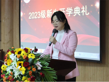 护理学院教师代表尚方用饱满热情的语言表达了对同学们的欢迎与期望:注重学识的成长、人格的成长、能力的成长,尽情挥洒青春的汗水,彰显新时代青年的活力。新生代表陈欣雨在发言中号召2023级新生要坚定理想信念、共同携手并肩、追逐梦想的星辰大海,共同创造美好的未来。