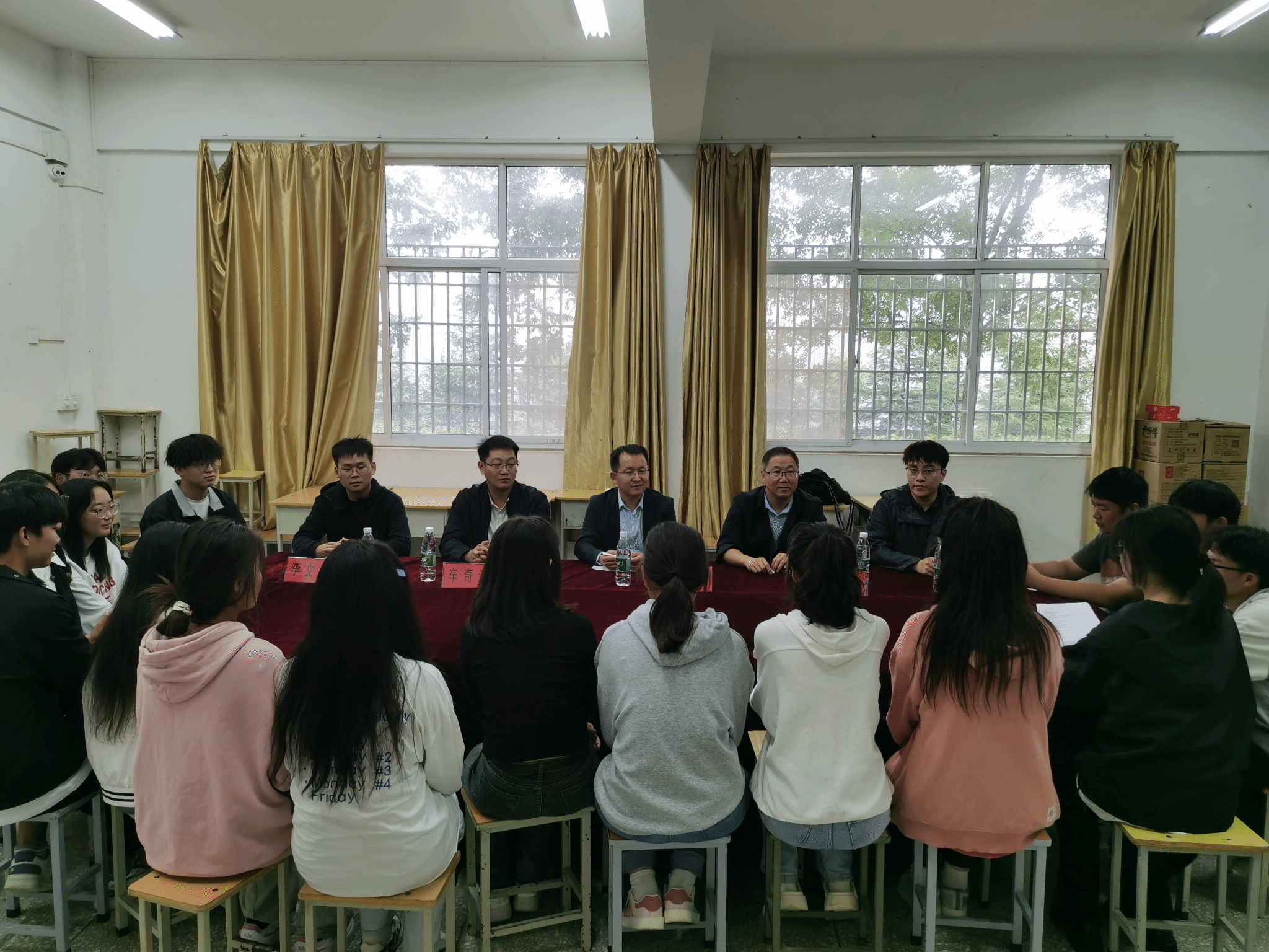 本网讯(文/李文武 图/车奇涛 )为帮助2023级新生尽快适应大学生活,转变思维、茁壮成长,成为有理想、肯担当、能作为的新时代大学生。2023年9月28日,尚真书院党委副书记、副院长李志轩,党委副书记苏峰带领综合事务中心副主任车奇涛,2022级辅导员侯相俊,2023级辅导员李文武,赴登封校区开展2023年秋季学期开学第一课活动,并进行学生代表座谈会。
