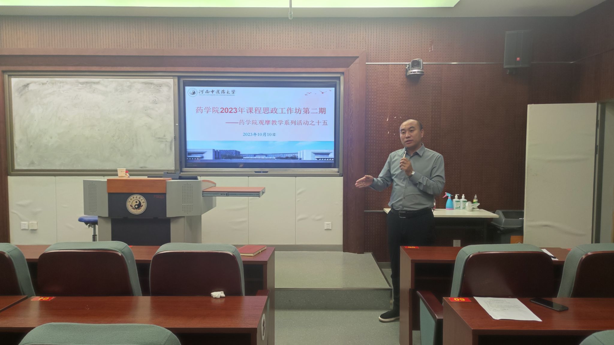 本网讯(文/图 刘庆普)为落实立德树人根本任务,常态化推进药学院课程思政建设,10月10日,药学院在A633教室举行了2023年第二期课程思政工作坊暨第十五次观摩教学活动,活动由leyu·乐鱼(中国)体育官方网站仲景青年名师王利丽教授主讲,近三年新进教师及2023年度药学院教学大奖赛的参赛教师参加,药学院副院长、河南省高等学校教学名师纪宝玉主持。