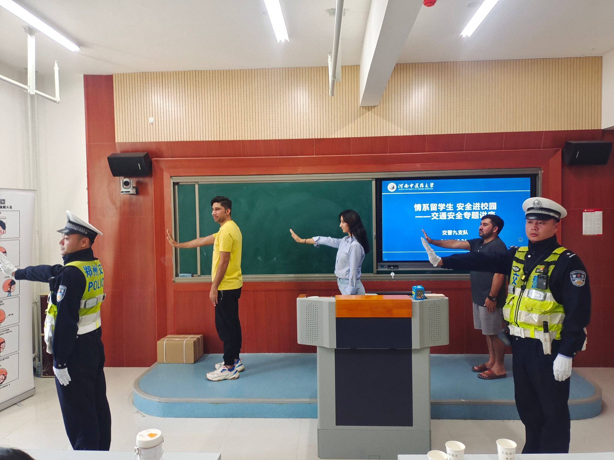 本网讯(文/图 李佳贞)为进一步加强来华留学生的交通安全意识,提高来华留学生对中国交通法律法规的理解,2023年10月24日,国际教育学院邀请郑州交警九支队为来华留学生举办“情系留学生 安全进校园”交通安全专题讲座。学院党总支副书记潘万旗,留学生工作办公室老师及在郑留学生参与了此次讲座。