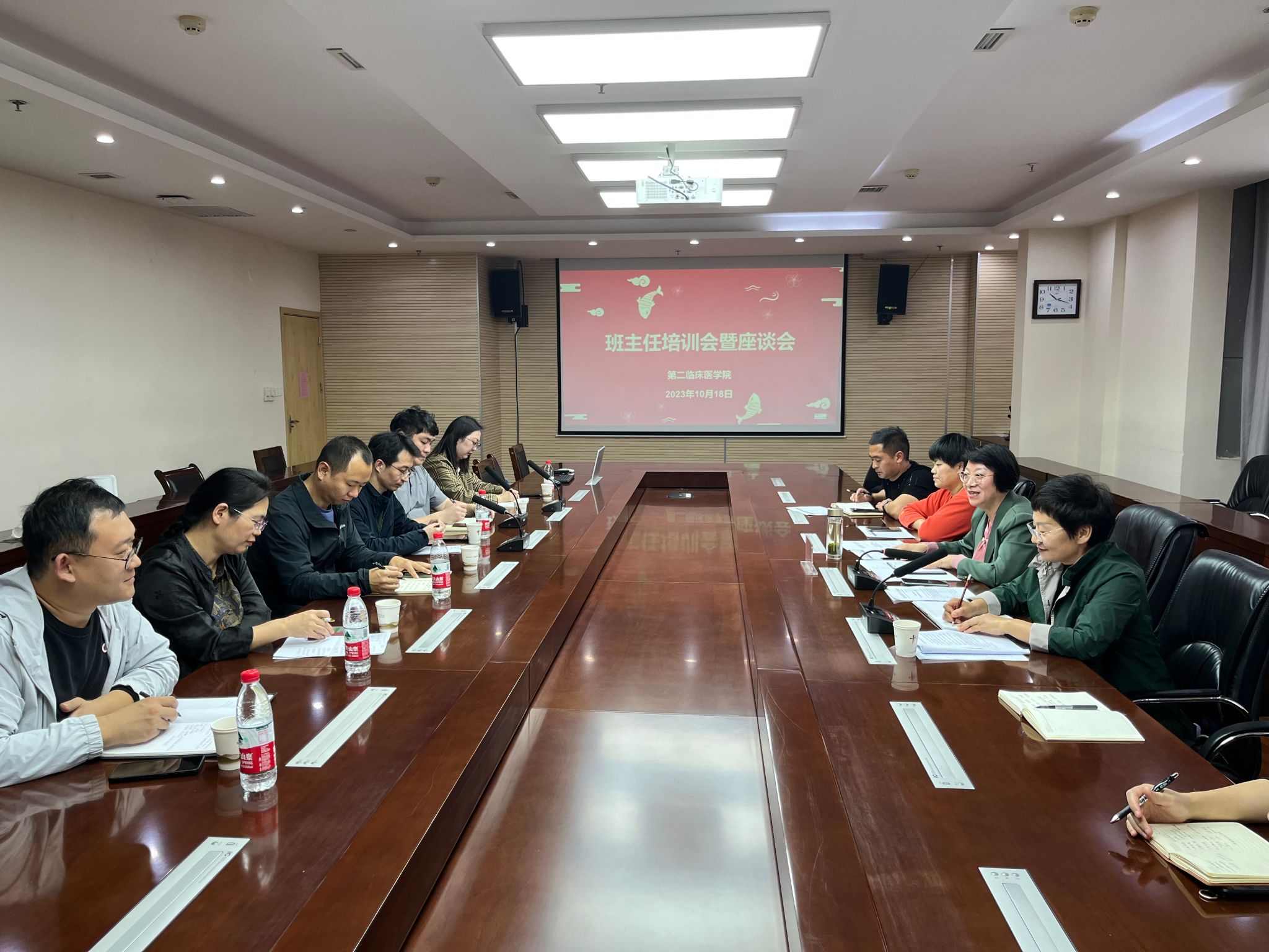 本网讯(文图/常征)为进一步加强学生工作队伍建设,充分发挥班主任在学生教育管理工作中的作用,2023年10月18日,第二临床医学院在龙子湖校区教学实验楼BS605组织召开班主任座谈会。第二临床医学院党委副书记周萍、龙子湖校区各年级班主任及全体辅导员参加座谈会。