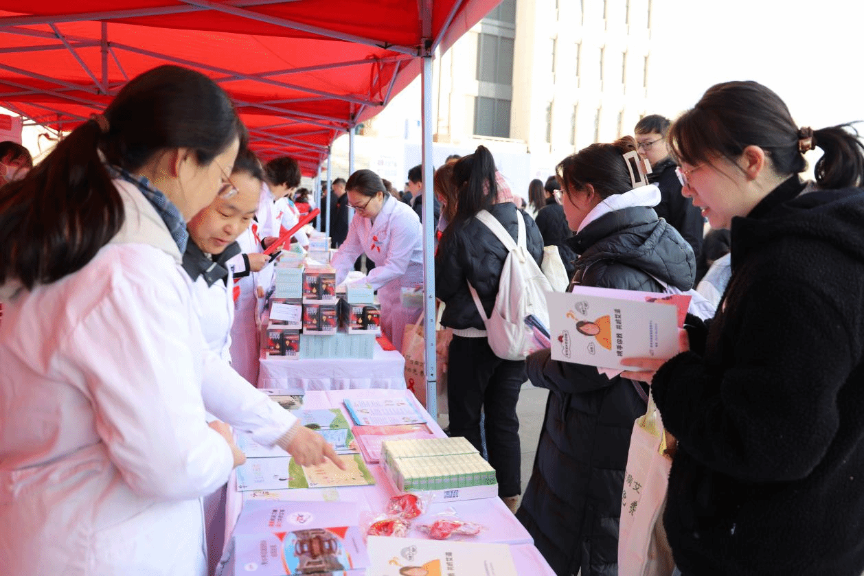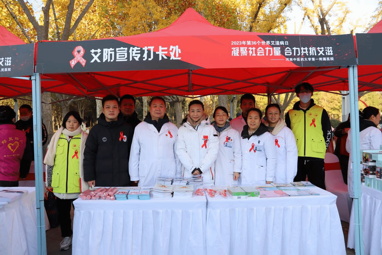 本网讯(文/李新宇 图/王慧颖)2023年12月1日,第36个“世界艾滋病日”主题宣传活动在河南财经政法大学举行,今年的宣传主题是“凝聚社会力量,合力共抗艾滋”。一附院党委副书记张婉红带领艾研中心主任郭会军、副主任金艳涛、马秀霞等专家与团委副书记李新宇带领的在第三届全国中医药高等院校大学生创新创业大赛中夺得金奖的“关艾”红丝带协会及杏林志愿者服务团10名志愿者共同参加活动并交流经验。
