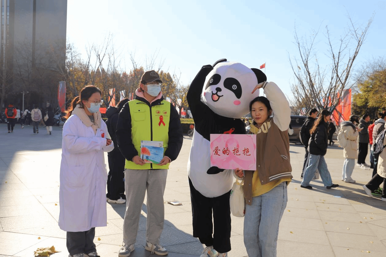 活动现场,吉祥物“小艾同学”作为一附院防艾宣传大使深受学生们喜爱,纷纷予以“爱的抱抱”。医院工作人员通过现场咨询、展板介绍、发放宣传资料等形式帮助参与者充分了解艾滋病及其危害,引导青年学生主动学习艾滋病防治知识,养成健康的生活方式。