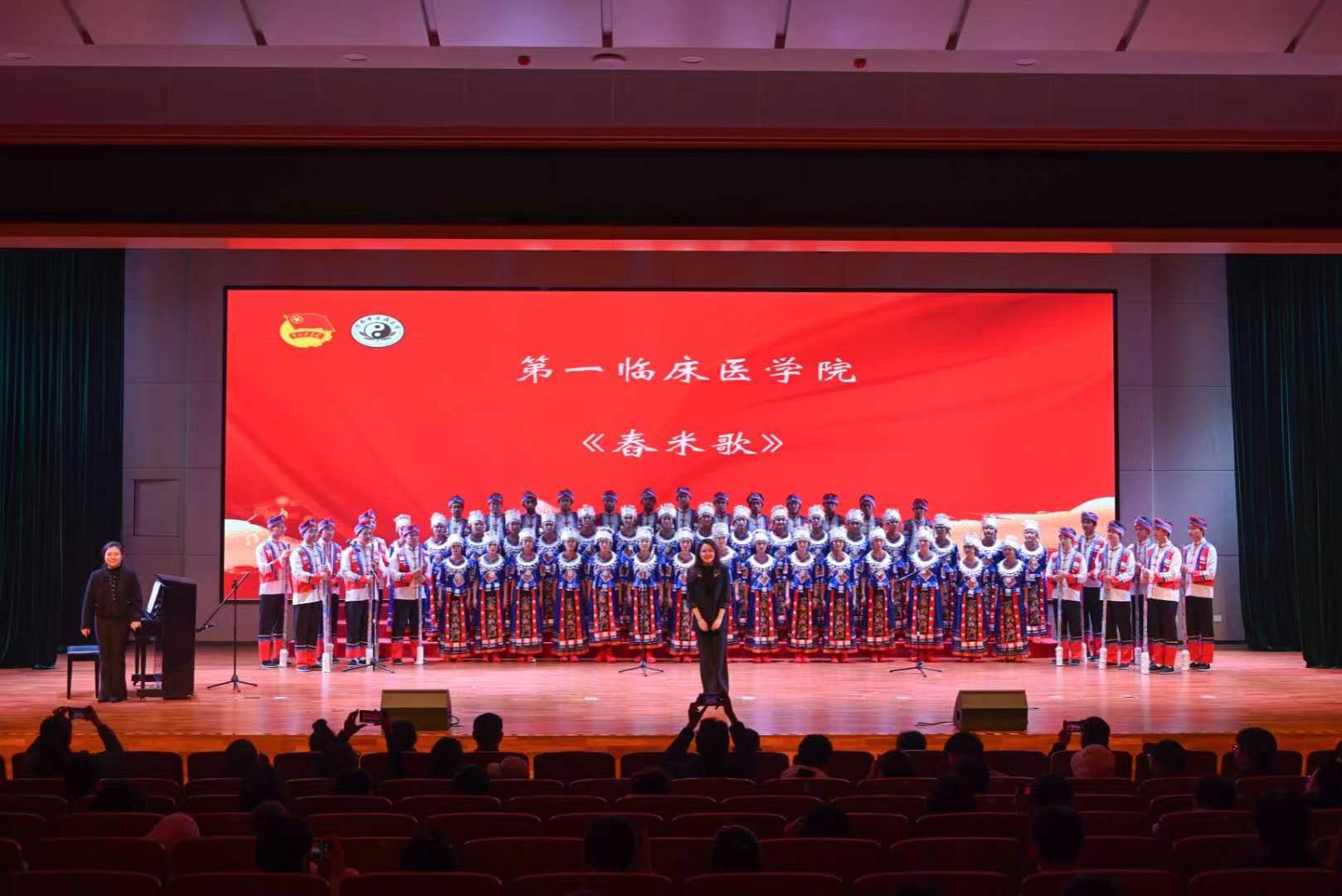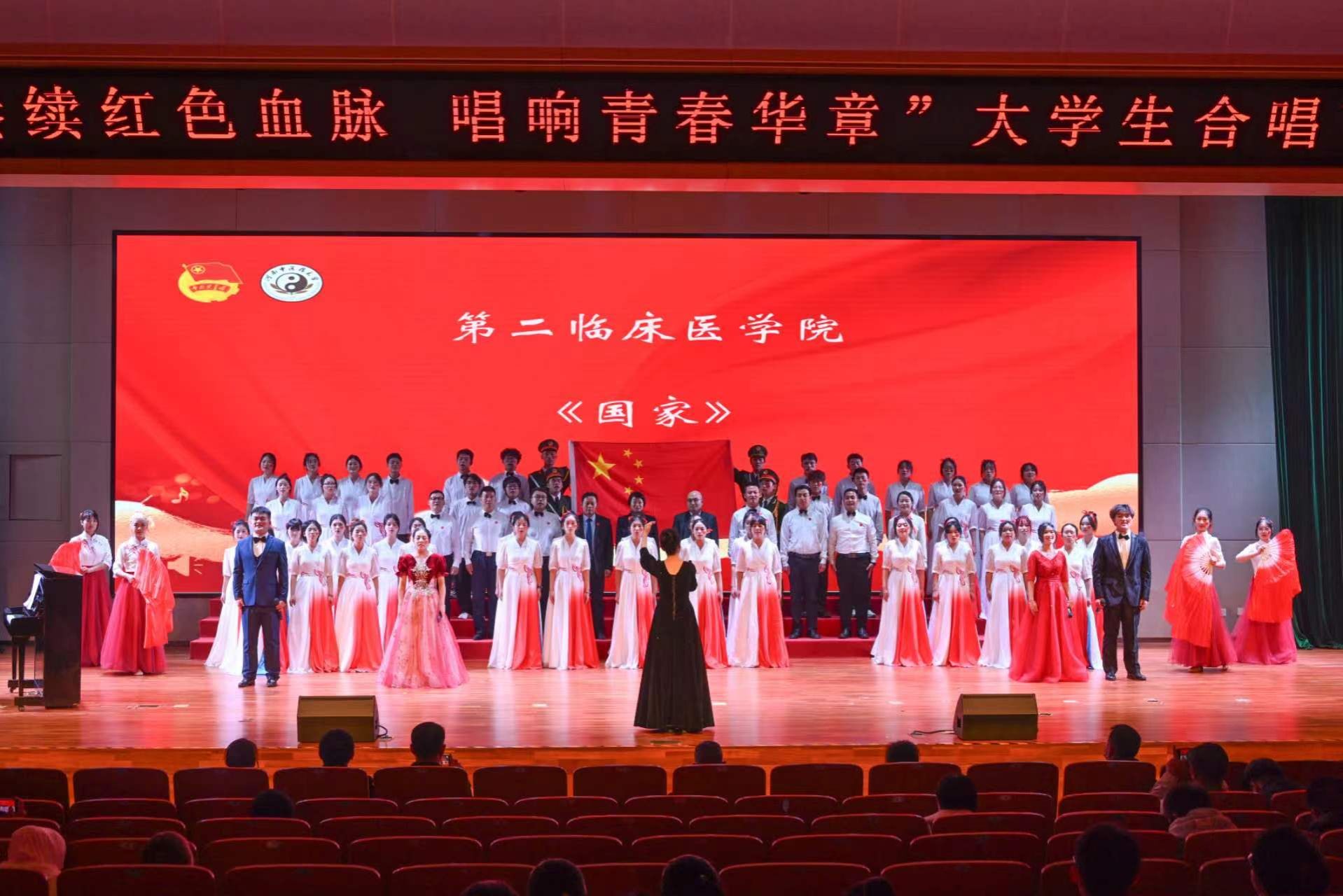 15支参赛队伍按照抽签顺序依次演唱必选曲目《leyu·乐鱼(中国)体育官方网站校歌》和自选曲目。比赛得到了各二级院(部)领导老师的大力支持,每支参赛队伍中都有包括二级院(部)党委书记、院长等在内的数名教职工参与。比赛现场,参赛师生精神饱满、激情昂扬,演唱了多首脍炙人口、振奋人心的歌曲。中医学院《保卫黄河》歌声如浪涛般汹涌澎湃,多声部层次分明,用音乐的力量传递激昂的爱国热情;体育学院《青春修炼手册》充满青春活力,描述了青春的成长与奋斗;第一临床医学院带来《舂米歌》,旋律简单明快的,配合舂米的动作和节奏,富有民族特色;第二临床医学院一首《国家》唱出了他们强大的凝聚力和团队精神,表达了对祖国的热爱和敬意;骨伤学院带来一段激情洋溢的《星光》表演,舞台上的同学们在灯光的映衬下,通过音乐和肢体的完美配合,让每一位观众都沉浸在强烈的氛围中,感受着艺术的力量;第五临床医学院《在灿烂的阳光下》歌颂伟大的中国共产党,表达广大青年在党的带领下向着阳光继续前行。比赛在大学生艺术团合唱团表演曲目《星辰大海》中落下帷幕。最终第一临床医学院荣获比赛第一名,体育学院李珊珊荣获最佳指挥奖。