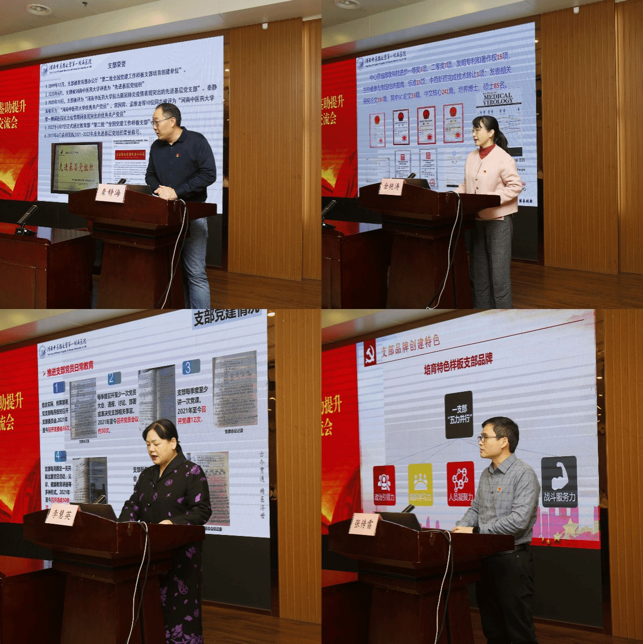 会上,样板党支部代表后勤党支部、艾研中心党支部、骨伤一区党支部、肝病诊疗中心一支部,围绕党支部建设工作方式方法、典型工作案例、支部品牌创建及工作思路进行了交流发言。