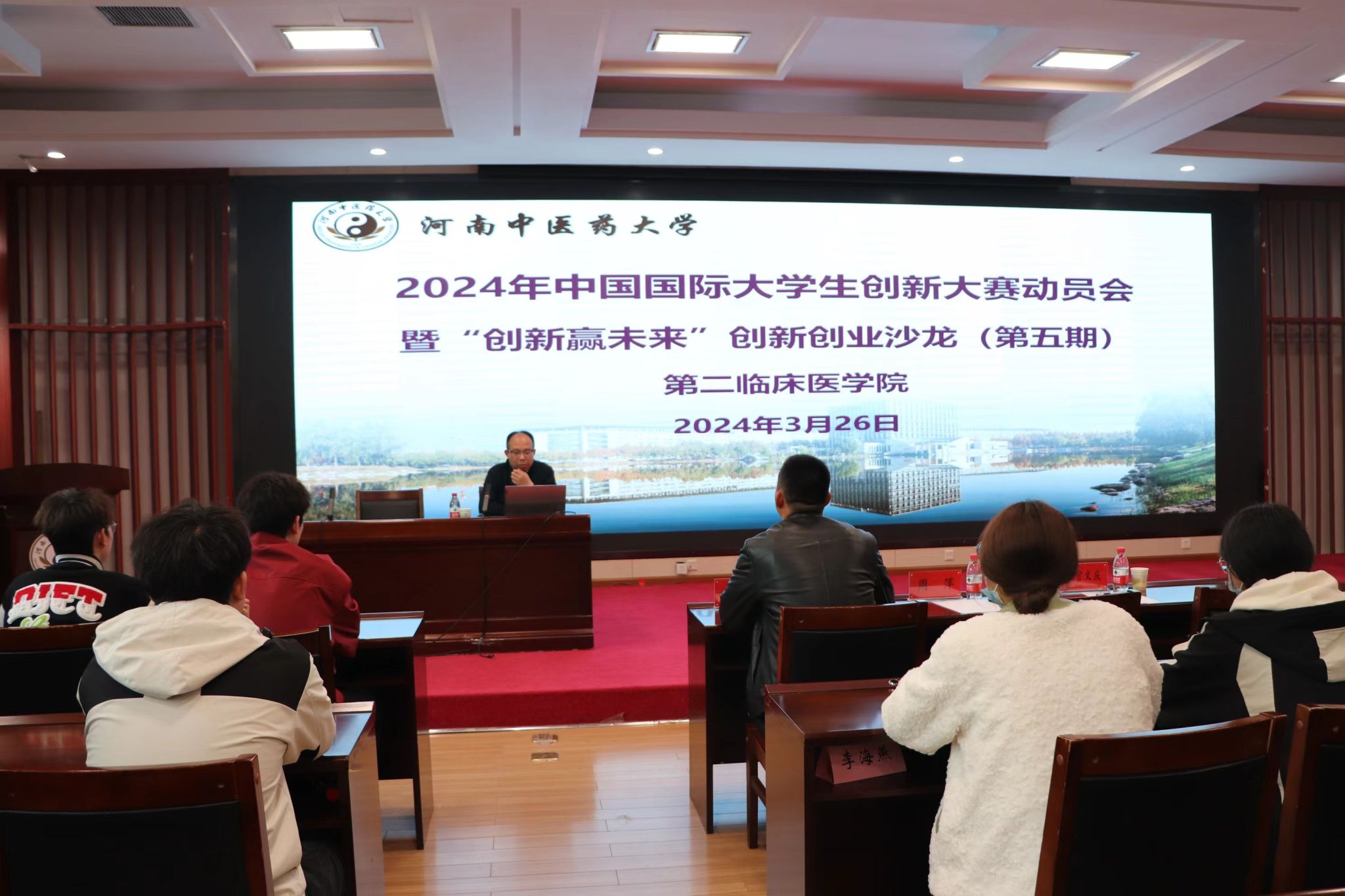 本网讯(文/崔浩博、韩思琪 图/李彦其)为积极响应国家创新驱动发展战略,提升在校医学生的创新能力,为备战今年的重大赛事注入强劲动力,2024年3月26日,第二临床医学院在图书馆第二报告厅成功举办了国际大学生创新大赛动员会暨创新创业沙龙活动。第二临床医学院党委副书记周萍教授、河南省中医院法律顾问、高级经济师、法制办副主任上官文庆、第二临床医学院分团委负责人常征老师出席此次活动,第一临床医学院陈睿同学受邀为同学们分享经验。