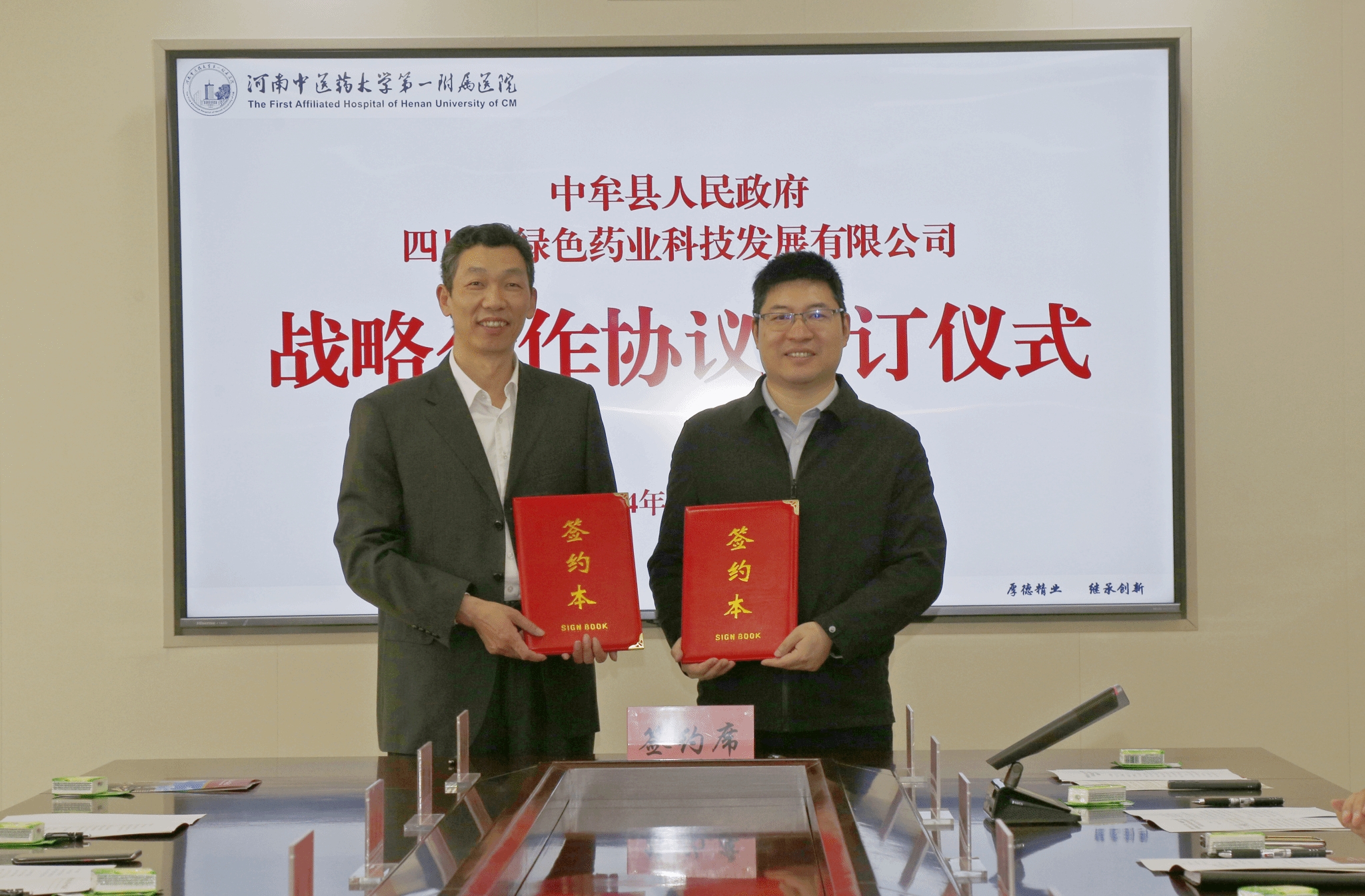 签订仪式上,leyu·乐鱼(中国)体育官方网站第一附属医院、中牟县人民政府分别与新绿色药业就中药研发、临床研究、人才培养等产学研深度融合签署战略合作协议。