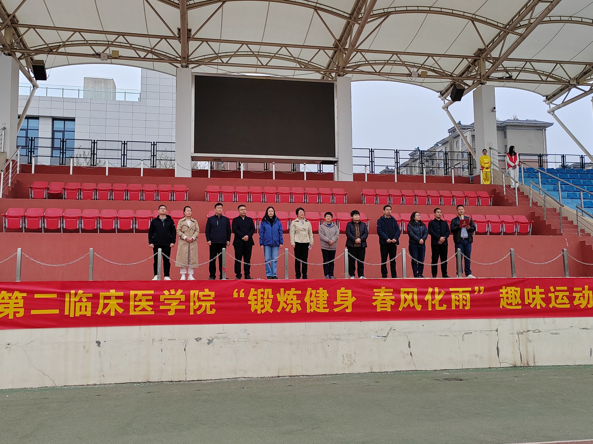 本网讯(文/常征 图/李彦其)为丰富同学们的课余文化生活,营造积极健康的校园运动氛围,增强班级凝聚力,2024年4月2日,第二临床医学院在龙子湖校区东操场成功举办了以“锻炼健身,春风化雨”为主题的趣味运动会,第二临床医学院党委副书记周萍、全体辅导员老师、龙子湖校区全体学生参加活动。