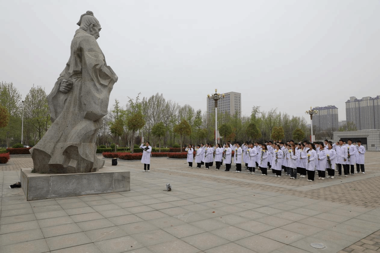 细雨微风,遥寄哀思。在张仲景雕像前,全体师生宣读医学生誓言,并进行三鞠躬,表达对医圣张仲景的追思缅怀,激励同学们努力学习弘扬中医药文化争做精诚大医。