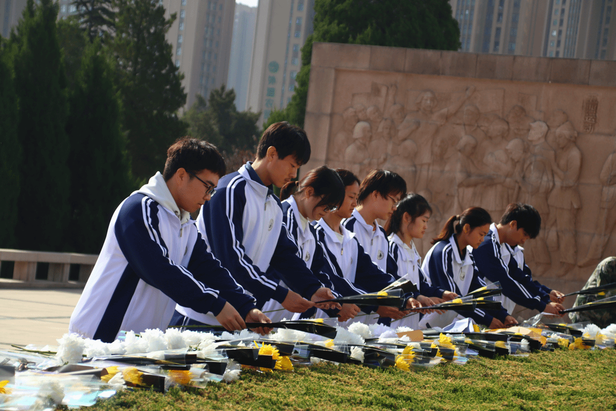 活动现场,同学们在革命烈士纪念碑前,肃然站立,低头默哀,敬献鲜花,表达对先烈的深深怀念和崇高敬意,深切缅怀革命先烈为民族独立和人民解放所付出的巨大牺牲。在中原英烈纪念馆内,同学们凝视着一张张历史照片,端详着展柜中的革命遗物,聆听着革命先烈的英勇事迹,感受着老一辈革命家的英勇气概、坚定意志和大无畏的革命精神。