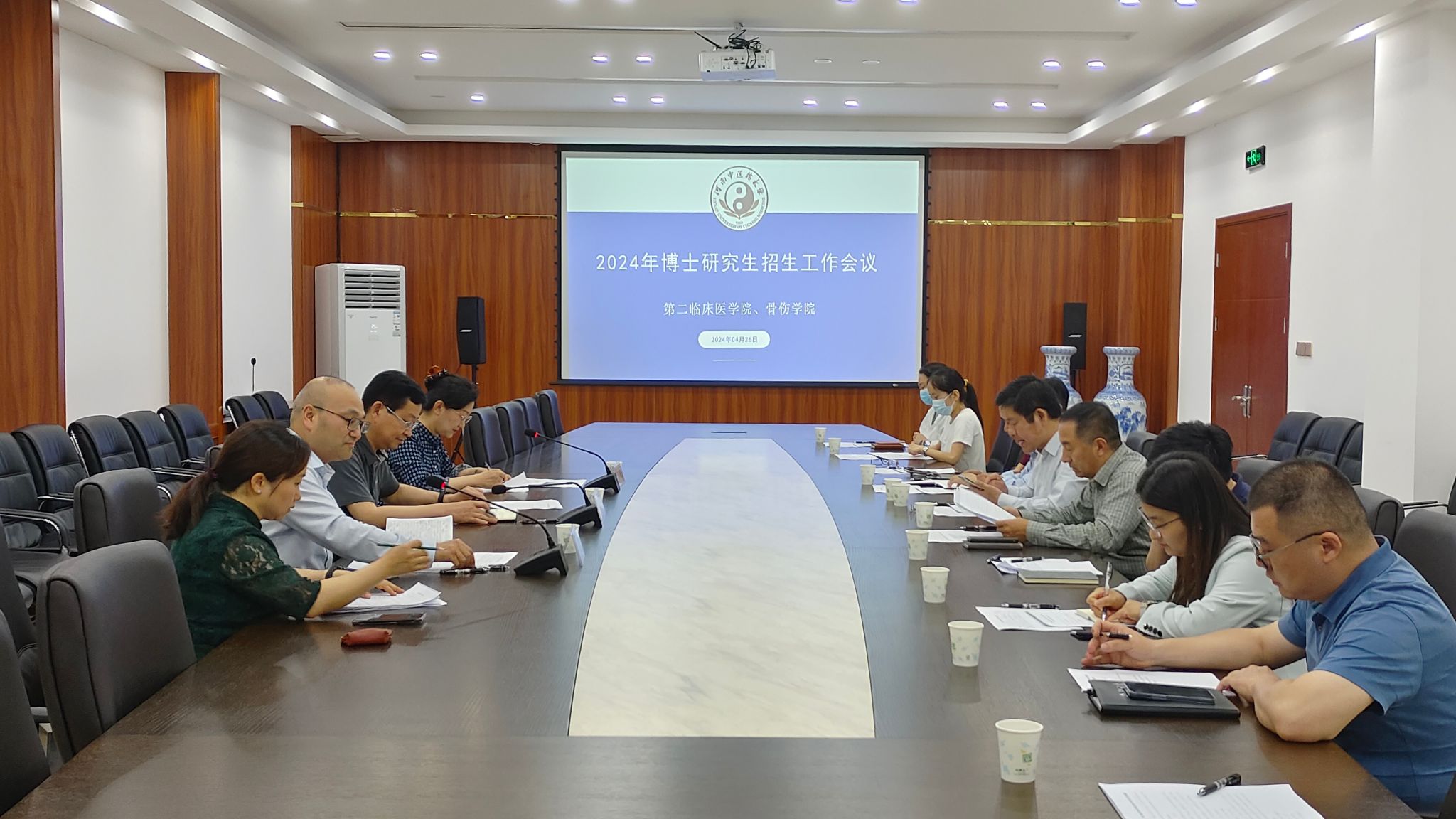 第二临床医学院研究生科主任丁虹和骨伤学院研究生科主任韩小飞分别在会上汇报了复试工作总体安排和具体工作要求。两个院部的博士生导师、学位点负责人、各招生学科秘书等二十余人参加了会议。