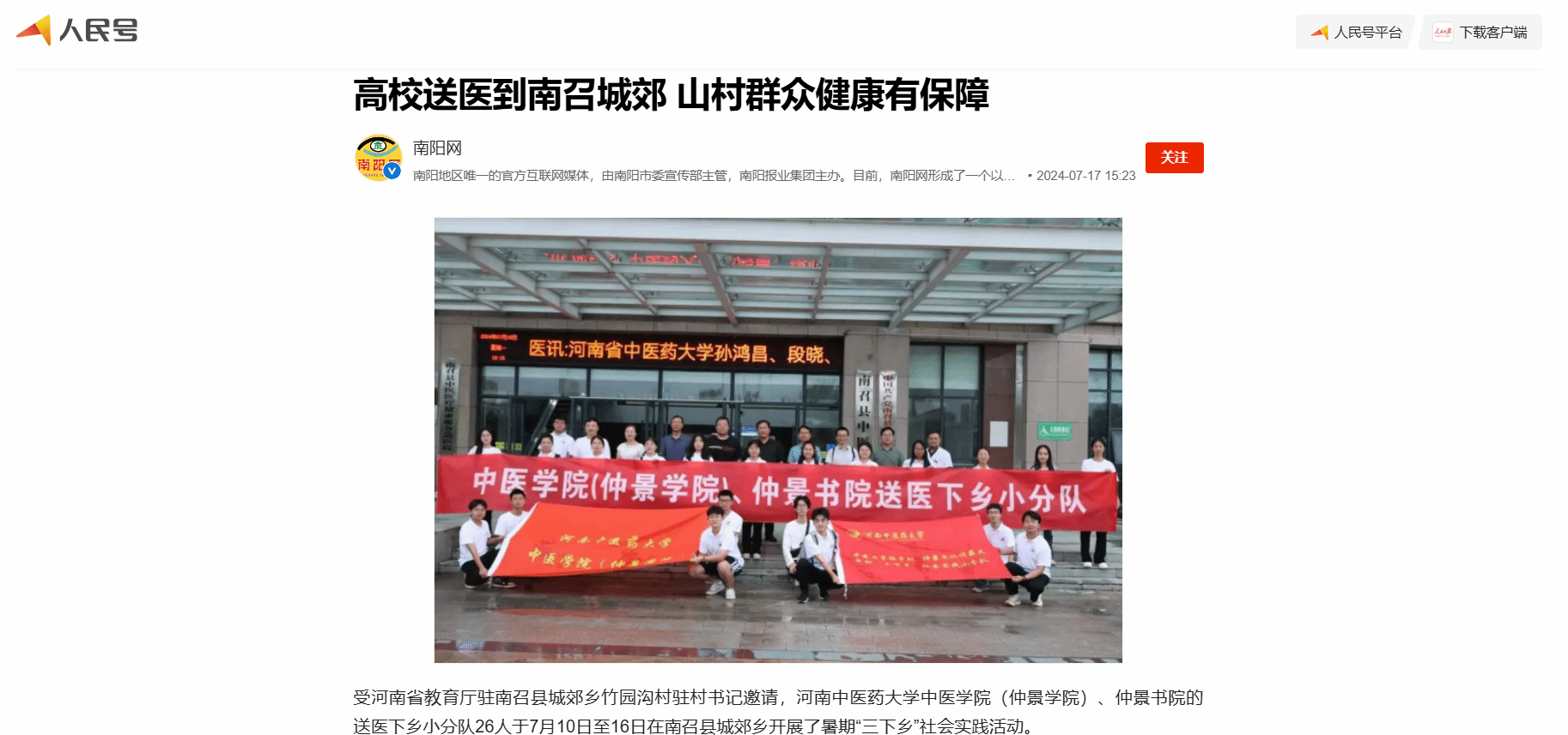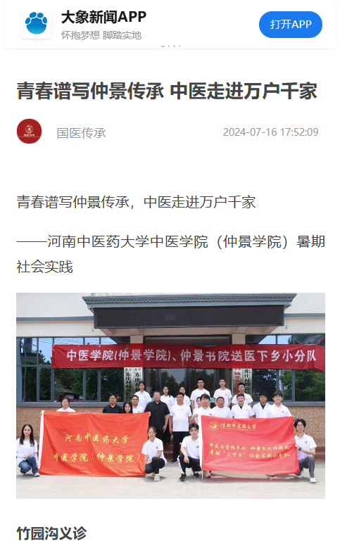 人民网等丨leyu·乐鱼(中国)体育官方网站中医学院(仲景学院)、仲景书院开展暑期社会实践活动