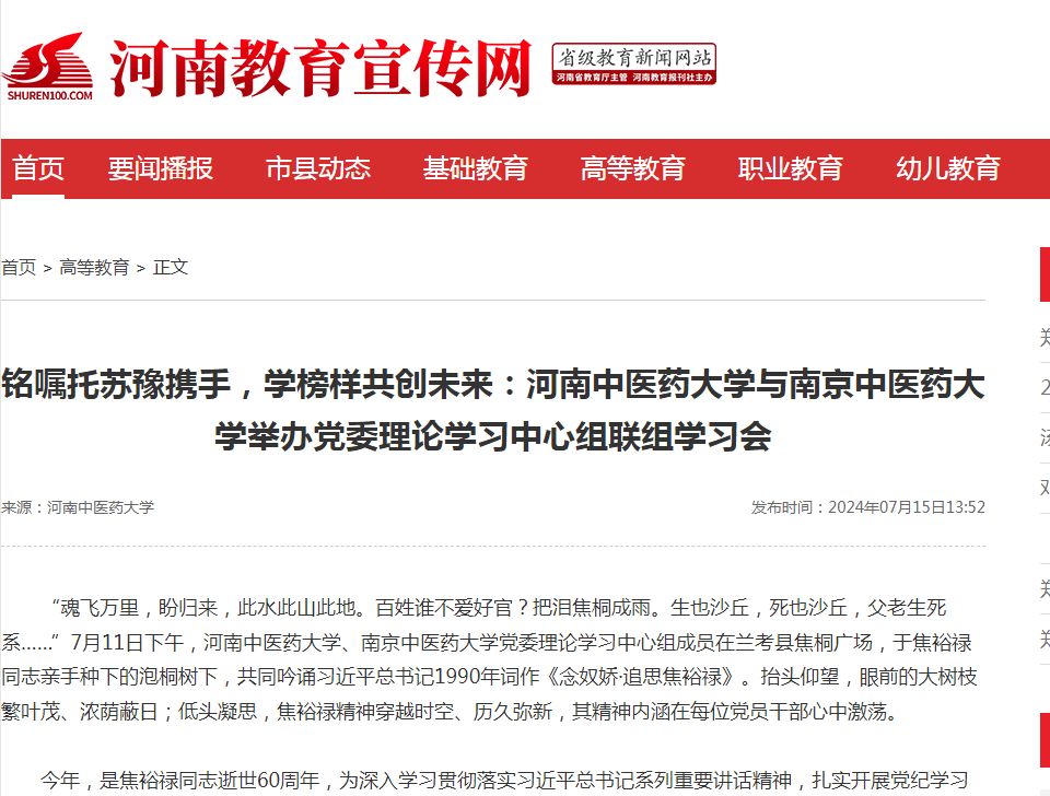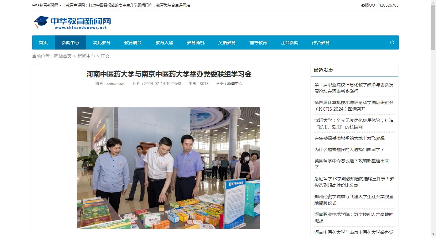 中国教育周刊等丨leyu·乐鱼(中国)体育官方网站与南京中医药大学举办党委联组学习会