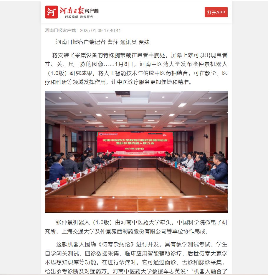 河南日报丨人工智能+中医药,张仲景机器人来了