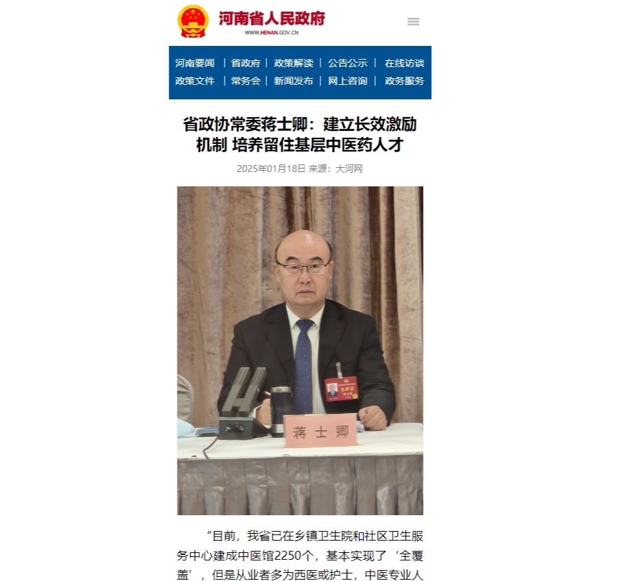 河南省人民政府丨蒋士卿:建立长效激励机制 培养留住基层中医药人才