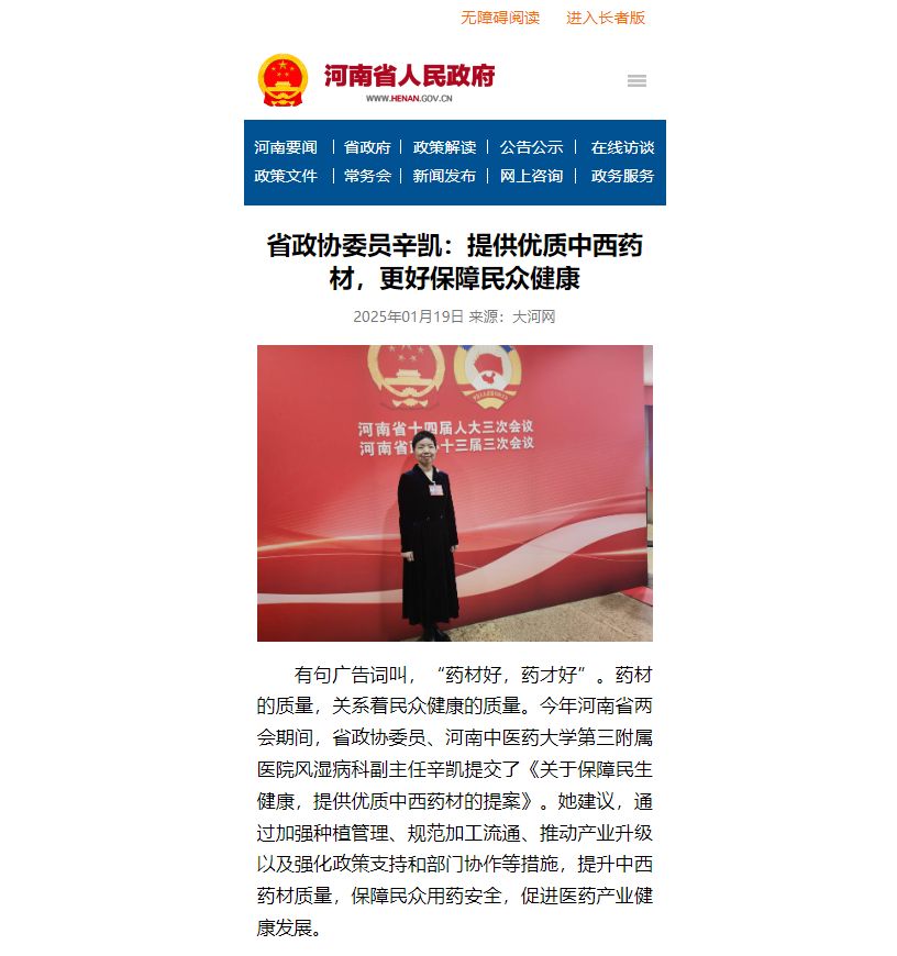 河南省人民政府丨辛凯:提供优质中西药材,更好保障民众健康