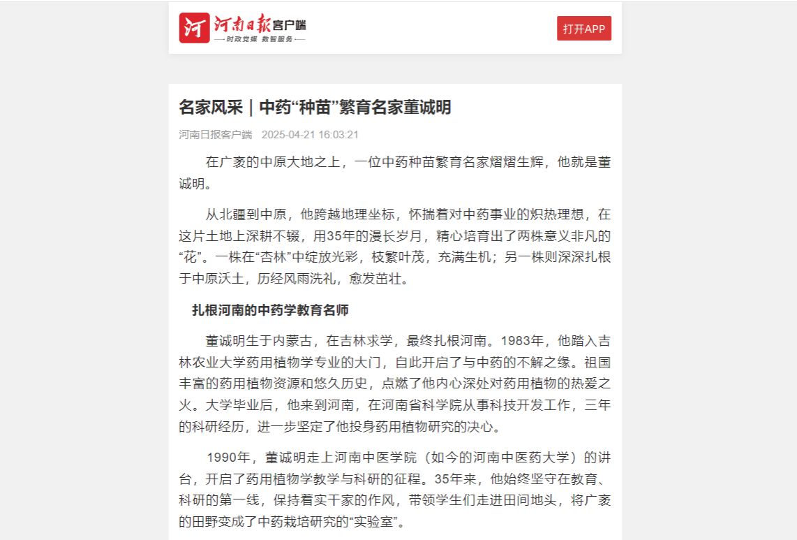 河南日报丨名家风采 中药“种苗”繁育名家董诚明