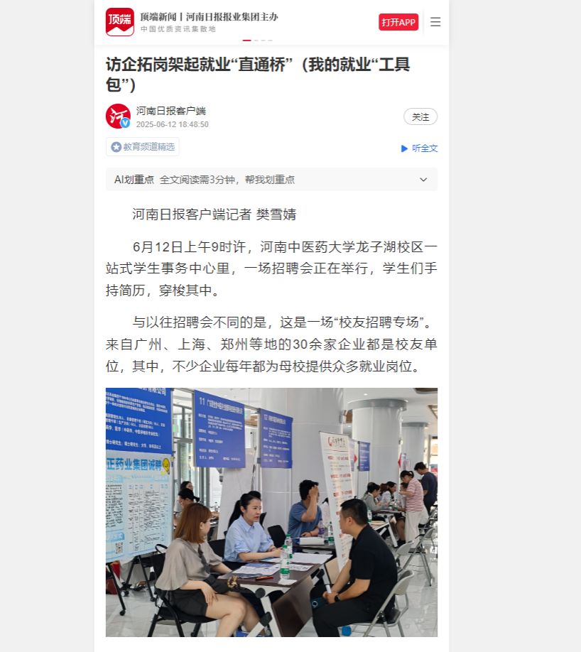 高校把脚步迈入企业,把眼光放向市场,对接企业岗位需求,掌握行业前沿动态,既让教育与实际工作需求紧密结合,又为学生牵线搭桥,拓宽了毕业生就业渠道,助力毕业生实现高质量就业。
