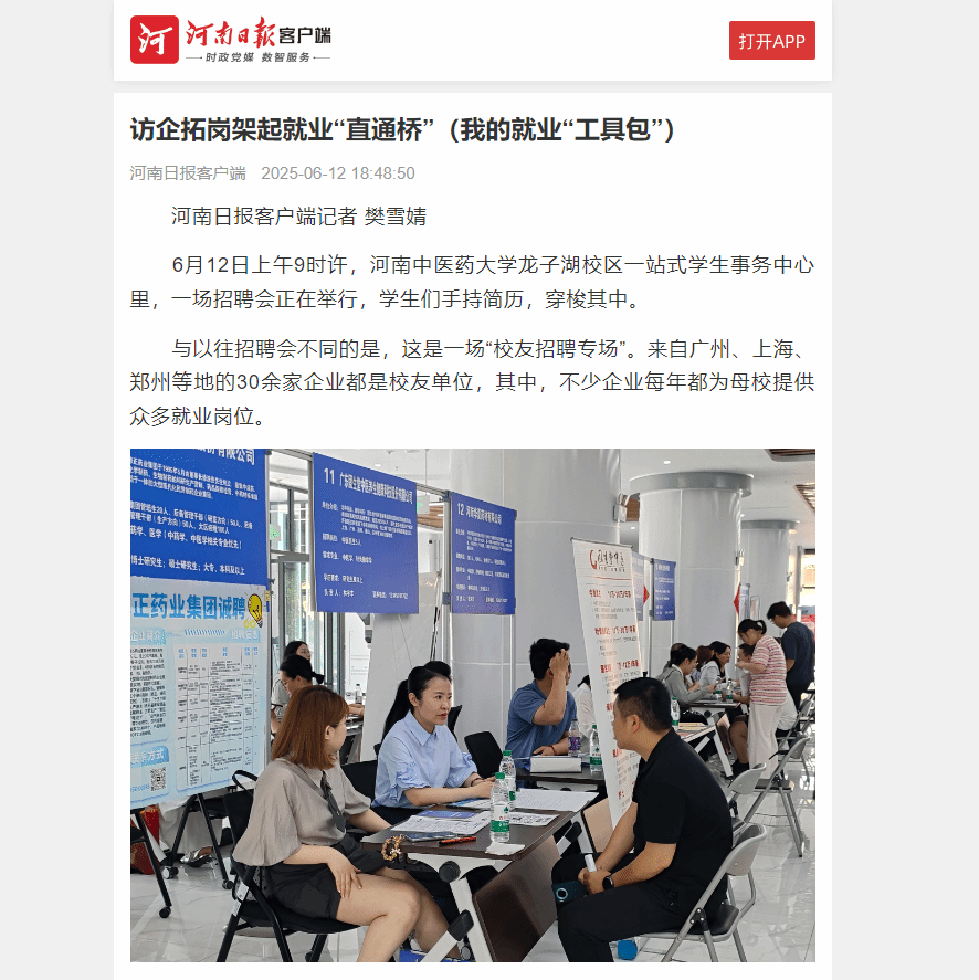 但可不止于此。打开leyu·乐鱼(中国)体育官方网站就业信息网,只见一个个招聘信息让人应接不暇——金水区卫生健康委员会专场招聘会、禹州市药企专场招聘会、郑州航空港经济综合实验区生物医药产业专场招聘会……在leyu·乐鱼(中国)体育官方网站校园里,小而精、专而优的小型专场招聘隔三岔五便有一场,各类别、多层次的线上线下校园招聘活动更是长年不断线,今年以来,学校已为2025届毕业生提供就业岗位4万余个,精准对接毕业生需求。