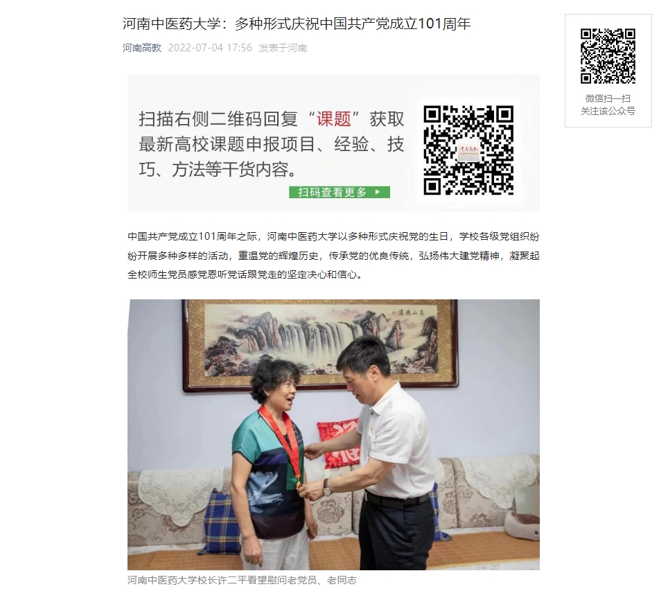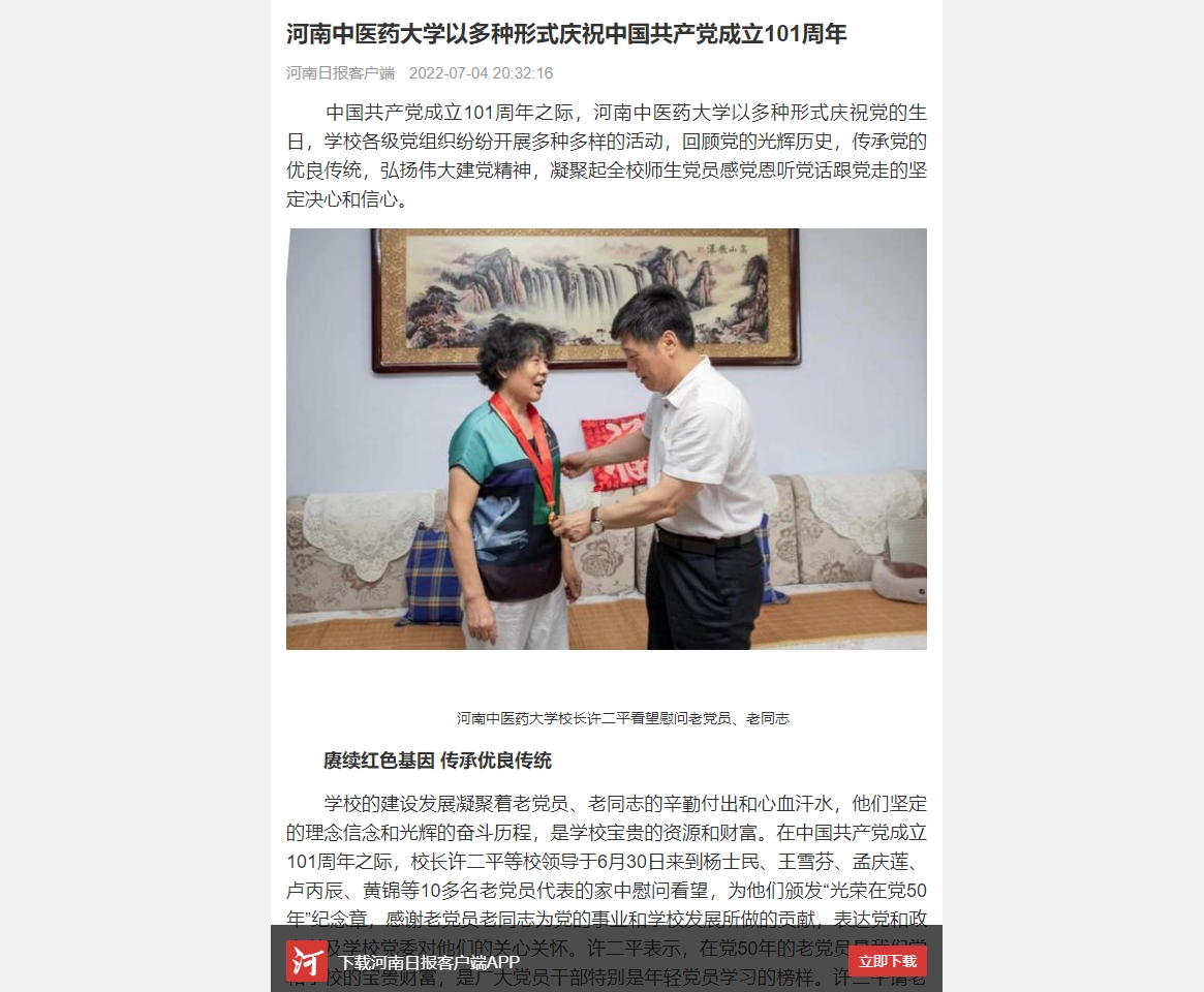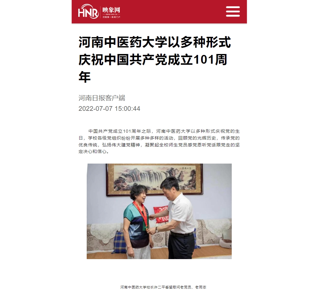 2022年7月4日-7日,河南日报客户端、河南高教、映象网对leyu·乐鱼(中国)体育官方网站以多种形式庆祝中国共产党成立101周年进行报道。