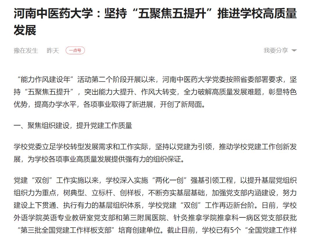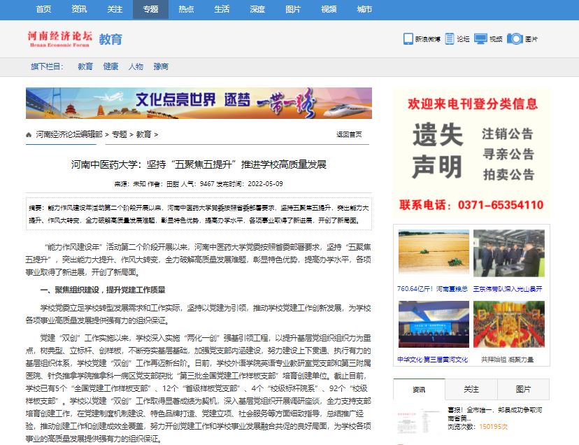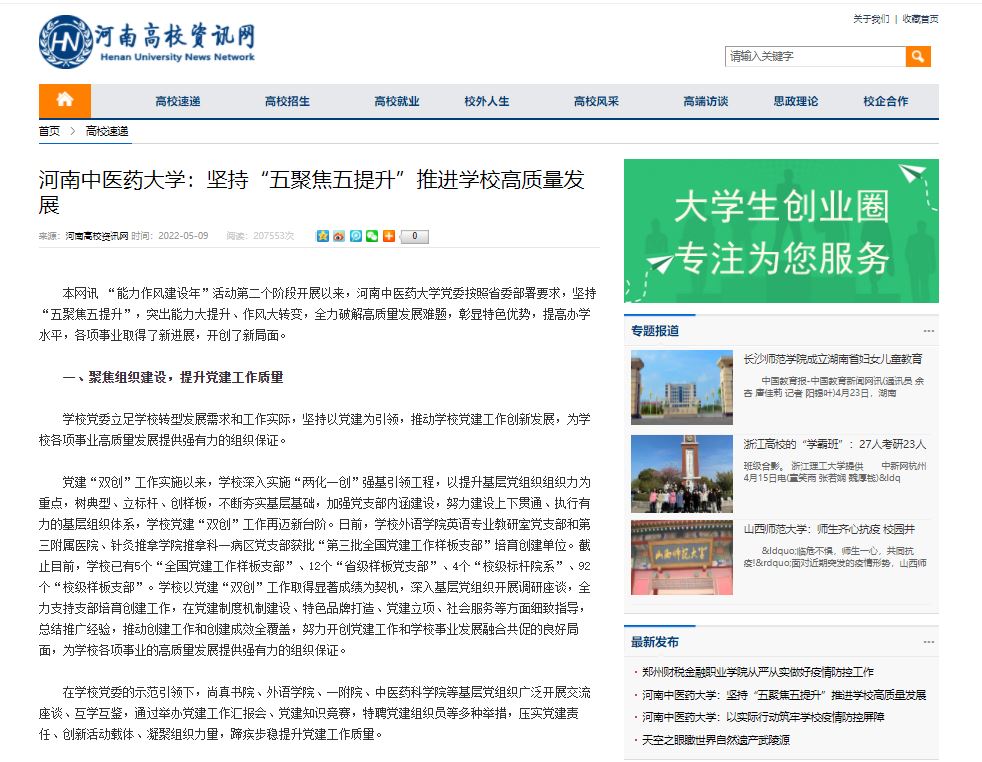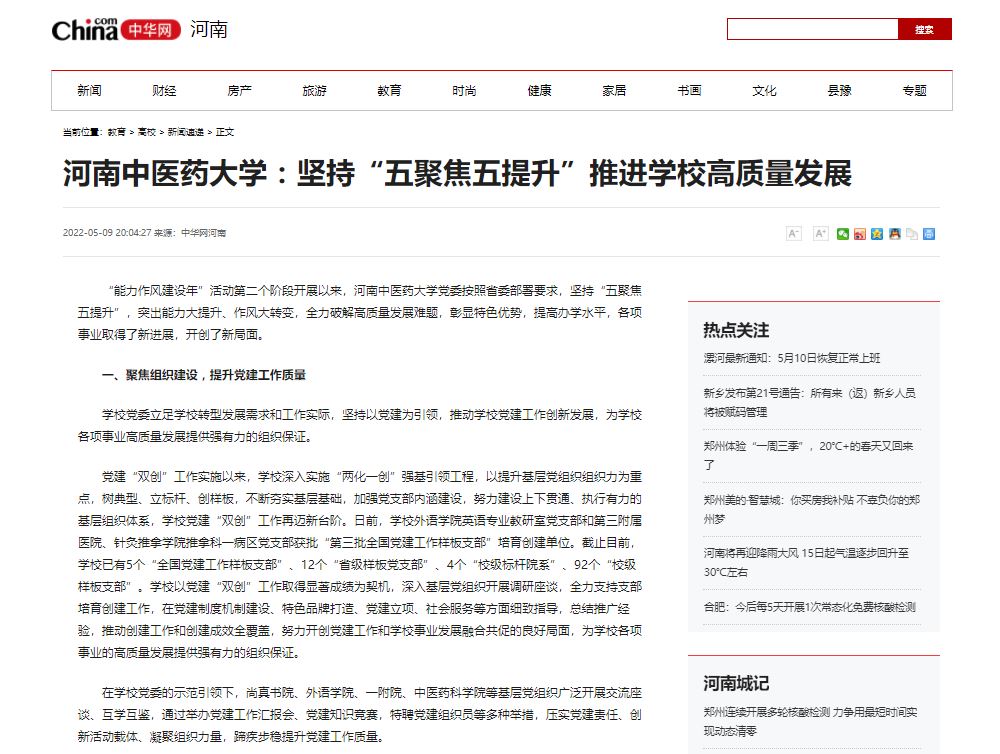 编者按:2022年5月9日,中华高校网、中华网、中新网、河南高校资讯网、新豫网、中原经济网、河南经济论坛、河南高校行、腾讯内容开放平台、百家号、一点资讯、今日头条等多家媒体对leyu·乐鱼(中国)体育官方网站坚持“五聚焦五提升”推进学校高质量发展进行报道。