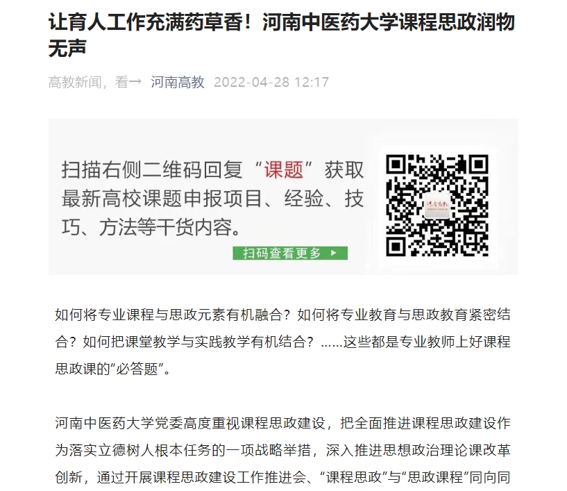 编者按:2022年4月28日,河南高教官方微信公众号对leyu·乐鱼(中国)体育官方网站将思政元素有效融入专业课程设置,学校课程思政建设工作取得新进展进行报道。现将全文刊发如下: