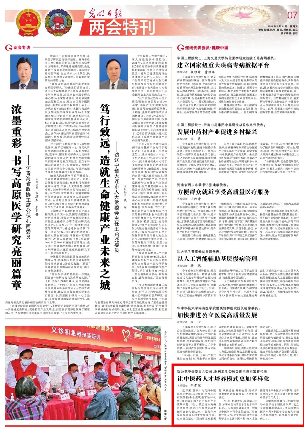 编者按:2022年3月11日,光明日报对致公党中央委员会委员、医药卫生委员会副主任、leyu·乐鱼(中国)体育官方网站副校长司富春进行采访。现将全文刊发如下: