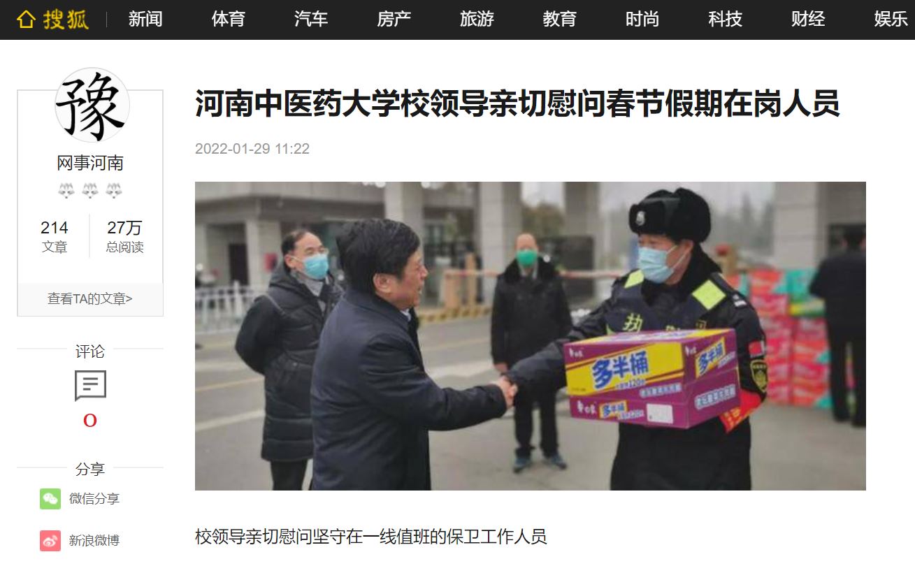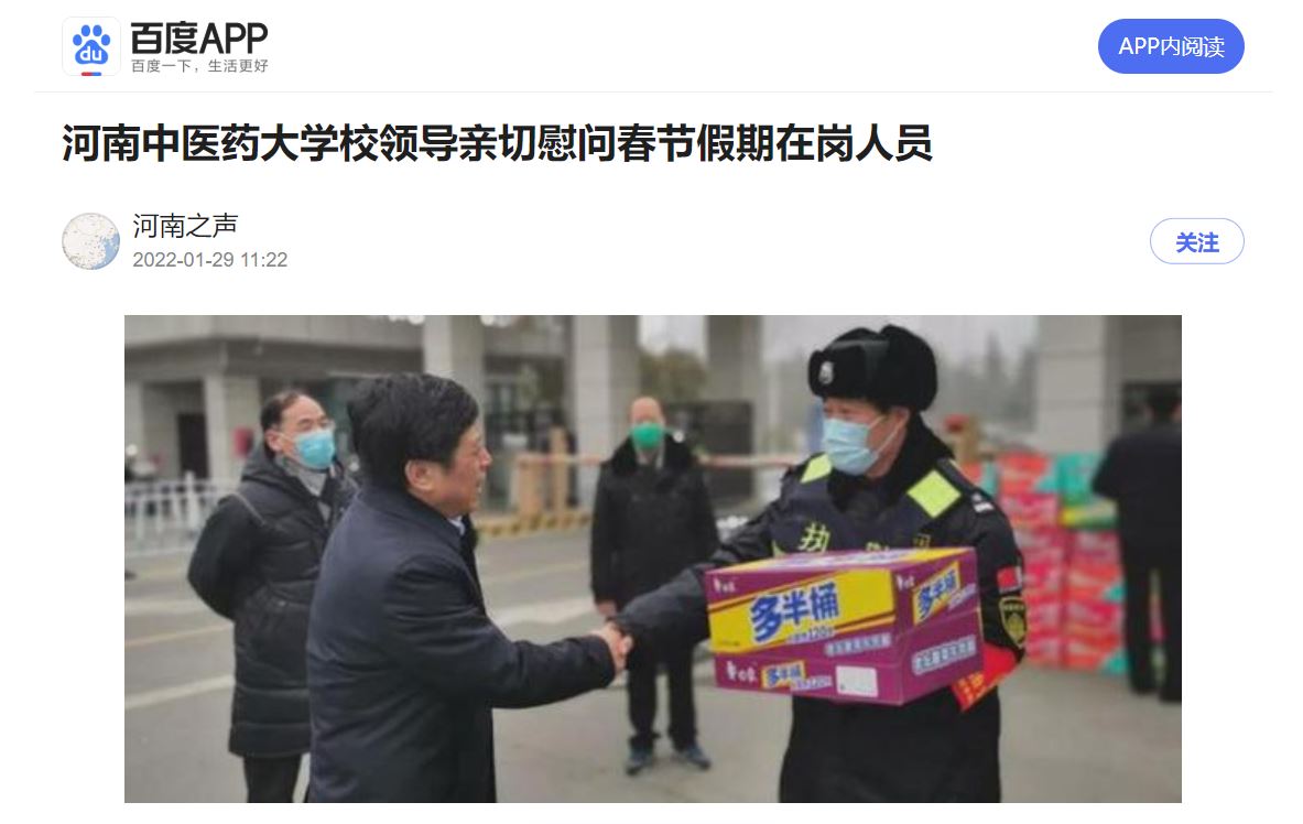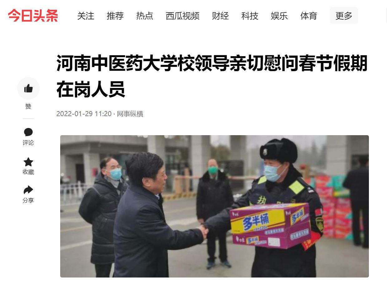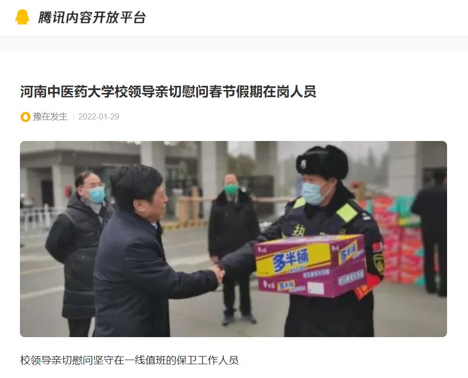 编者按:2022年1月29日,网易新闻、今日头条、百家号、腾讯内容开放平台、搜狐新闻、一点号等多家媒体对leyu·乐鱼(中国)体育官方网站校领导亲切慰问春节假期在岗人员进行报道。