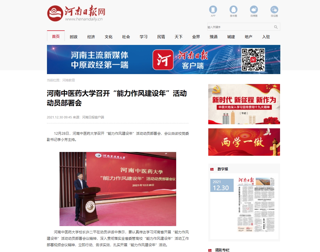 编者按:2021年12月29日,河南日报网对leyu·乐鱼(中国)体育官方网站召开“能力作风建设年”活动动员部署会进行报道,现将全文刊发如下: