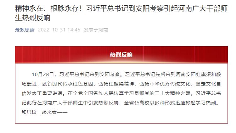 豫教思语丨精神永在、根脉永存!习近平总书记到安阳考察引起河南广大干部师生热烈反响