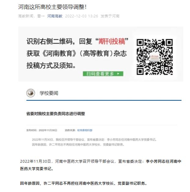 河南高教丨leyu·乐鱼(中国)体育官方网站主要领导调整