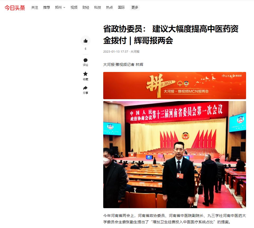 大河报、今日头条、中新网、凤凰网丨省政协委员:建议尽快恢复“河南省中医药管理局”