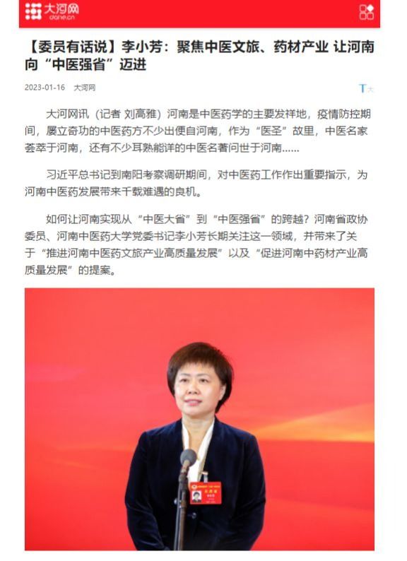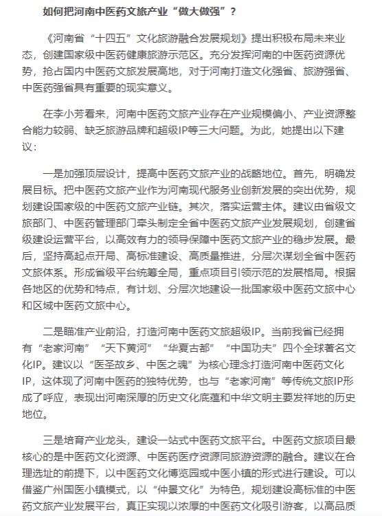 大河网丨李小芳:聚焦中医文旅、药材产业让河南向“中医强省”迈进