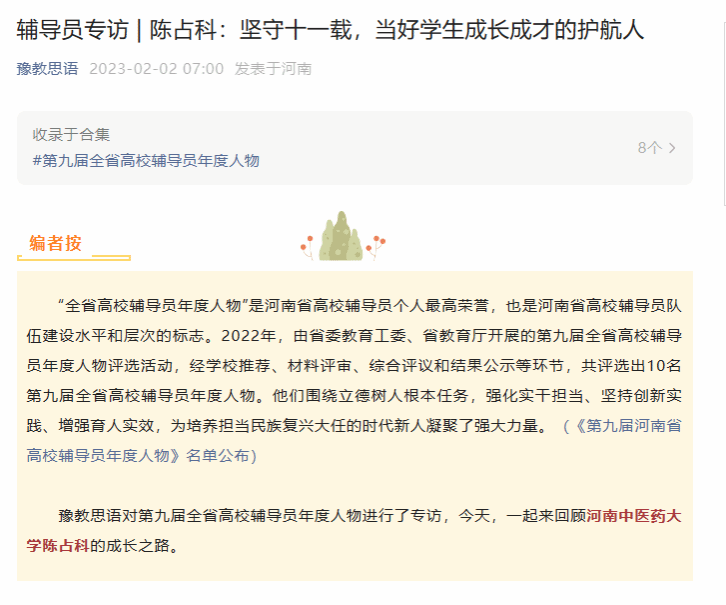 豫教思语丨辅导员专访 | 陈占科:坚守十一载,当好学生成长成才的护航人