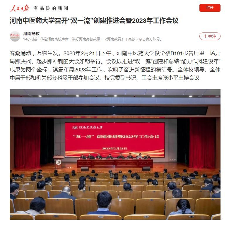 人民日报丨leyu·乐鱼(中国)体育官方网站召开“双一流”创建推进会暨2023年工作会议