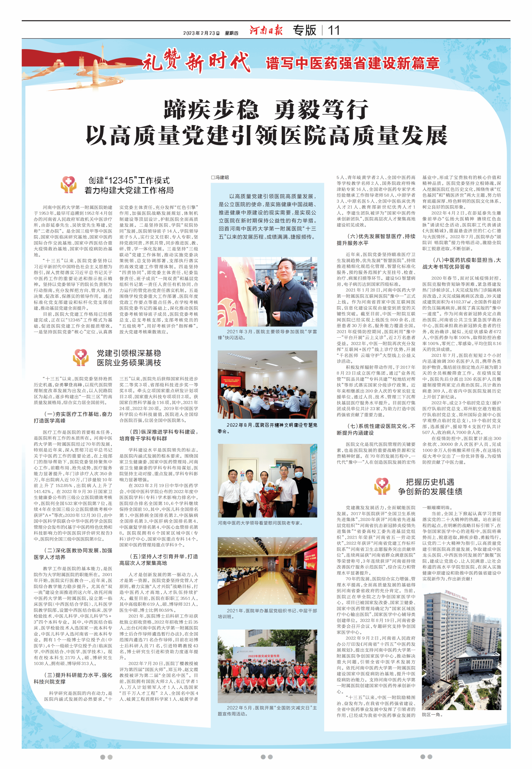 河南日报丨蹄疾步稳 勇毅笃行 以高质量党建引领医院高质量发展