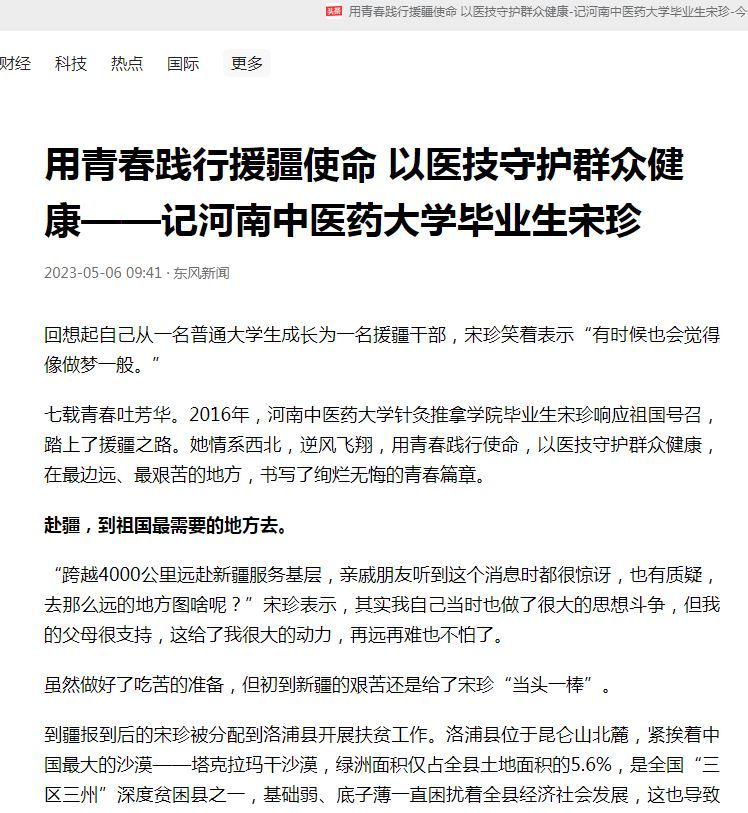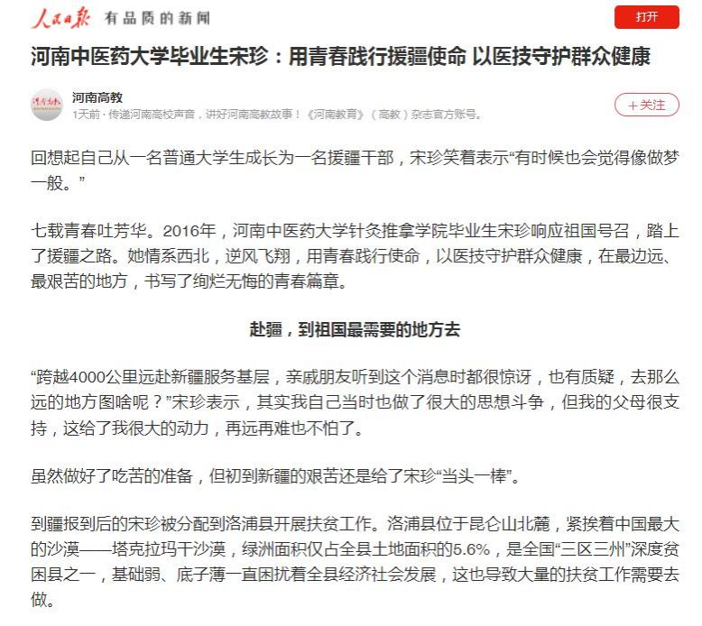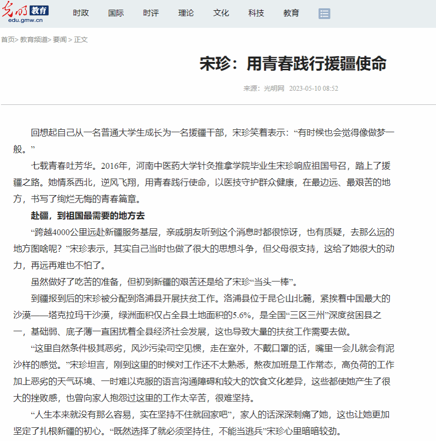 新华网客户端、光明网等丨leyu·乐鱼(中国)体育官方网站毕业生宋珍医技援疆无怨无悔