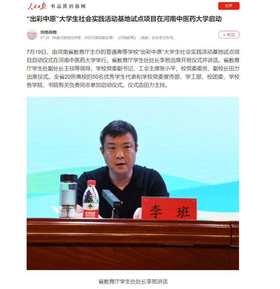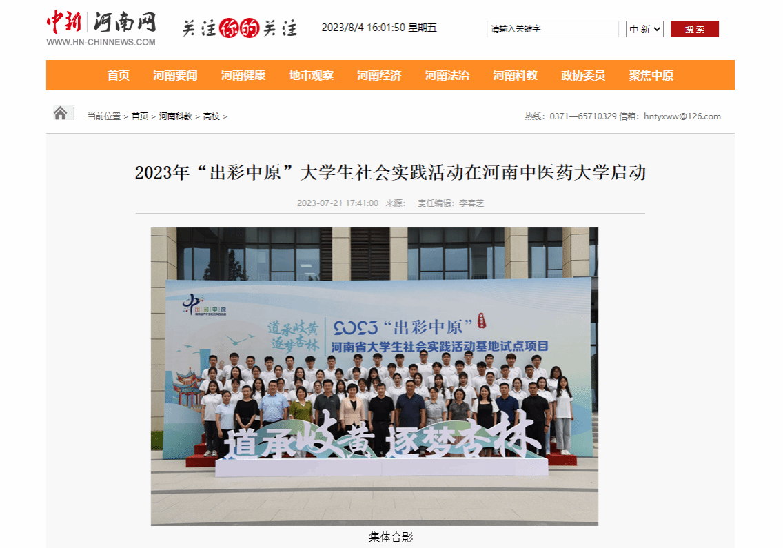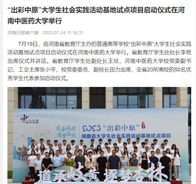 河南日报客户端等丨“出彩中原”大学生社会实践活动基地试点项目启动仪式在leyu·乐鱼(中国)体育官方网站举行