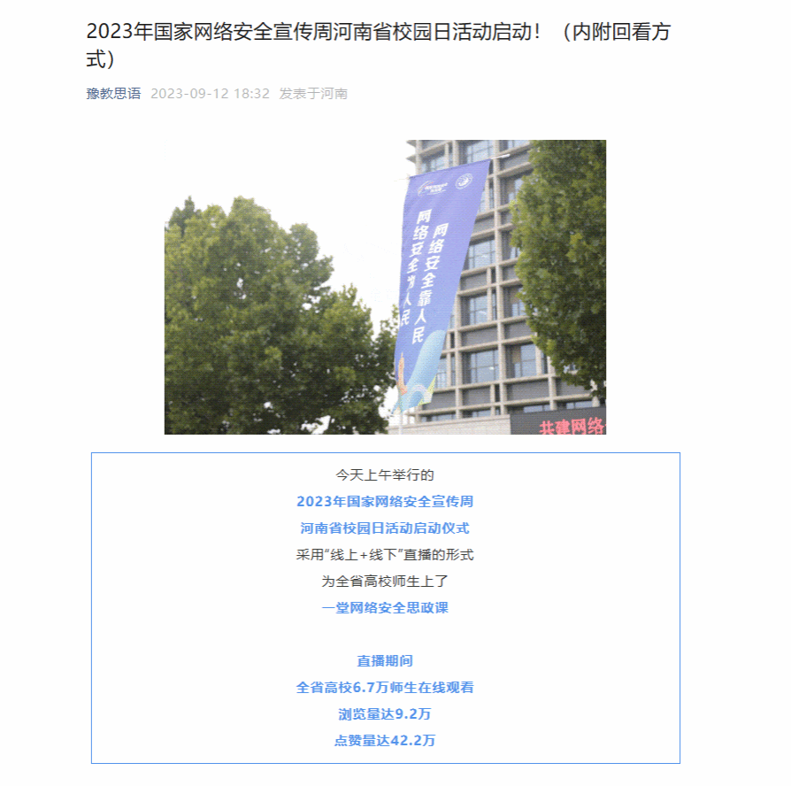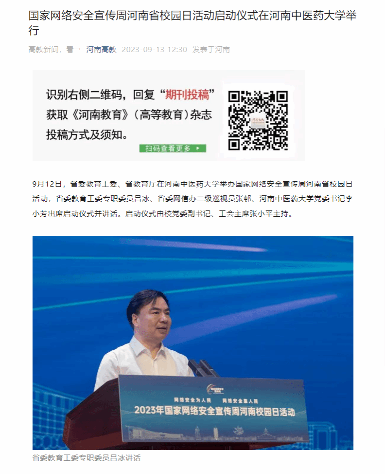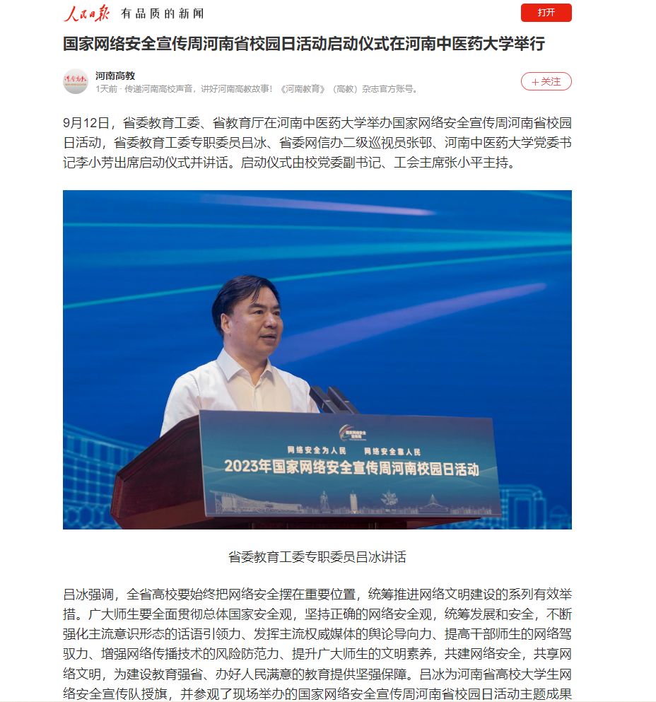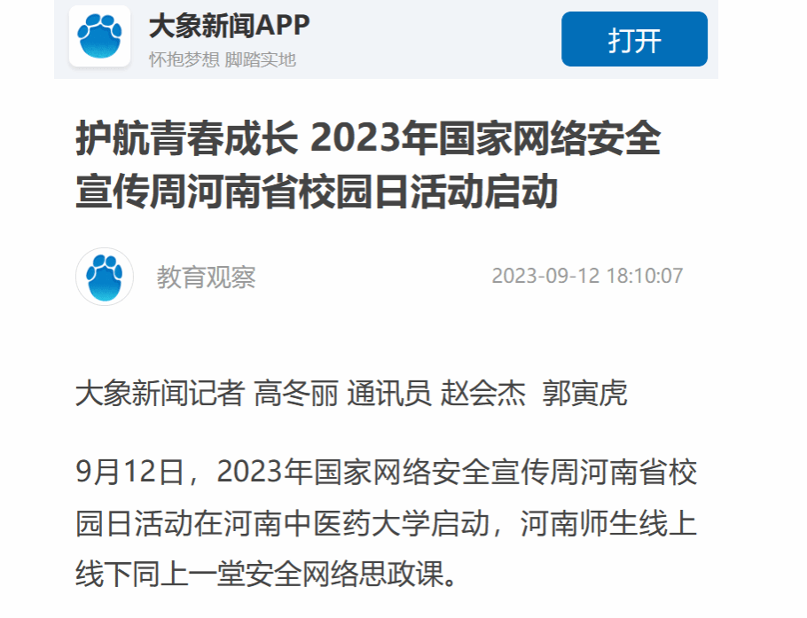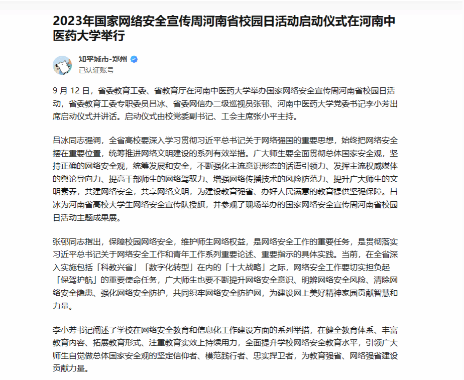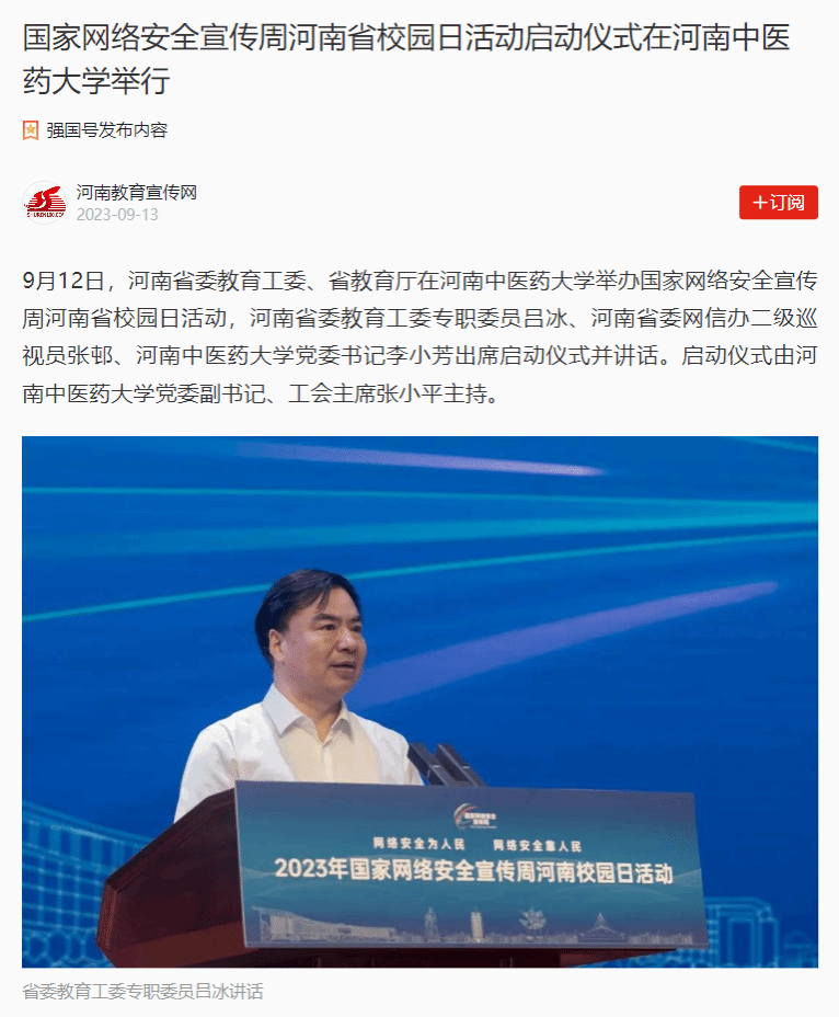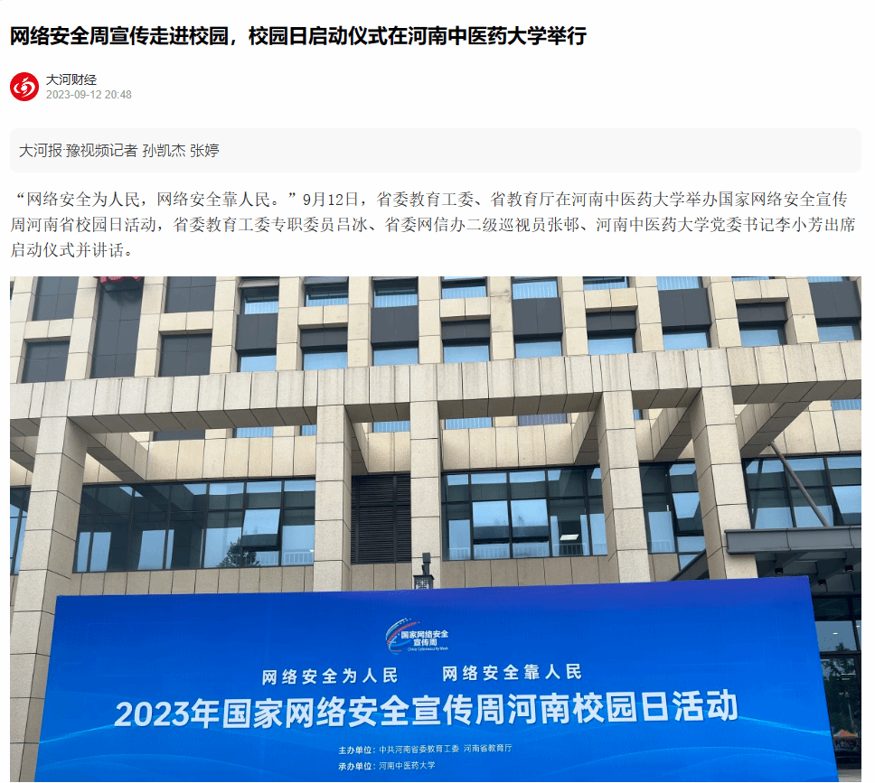 大象新闻、豫教思语等丨国家网络安全宣传周河南省校园日活动启动仪式在leyu·乐鱼(中国)体育官方网站举行