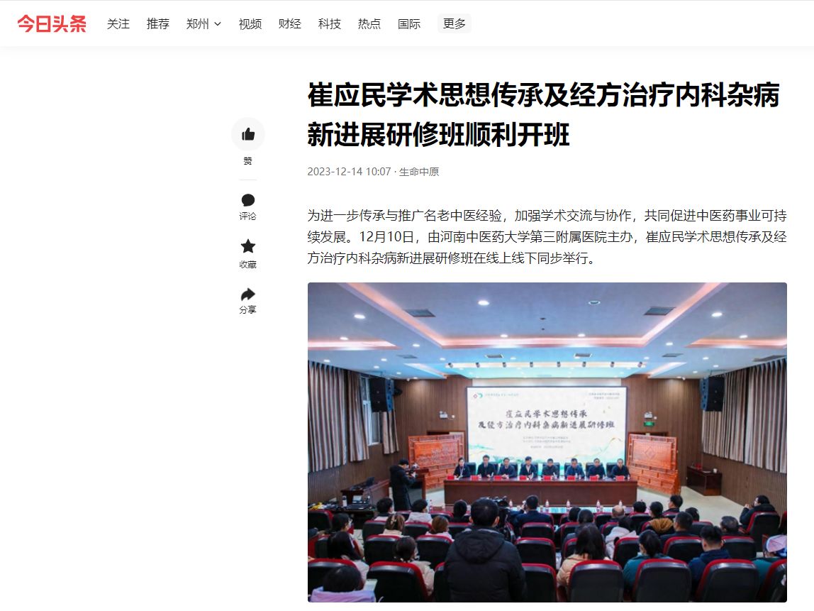 今日头条等丨崔应民学术思想传承及经方治疗内科杂病新进展研修班开班
