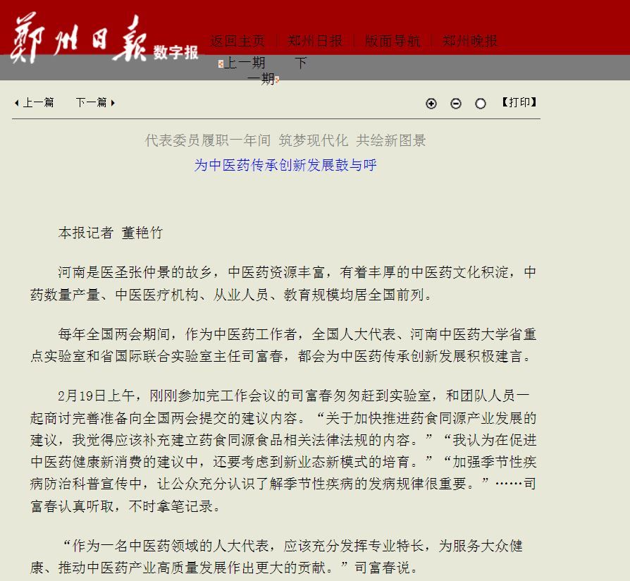 郑州日报丨【代表委员履职一年间】为中医药传承创新发展鼓与呼