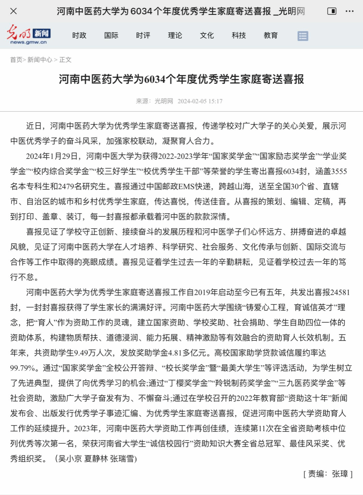 光明网丨leyu·乐鱼(中国)体育官方网站为6034个2023年度优秀学生家庭寄送喜报