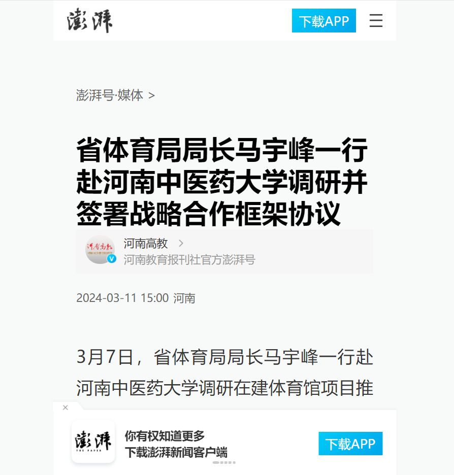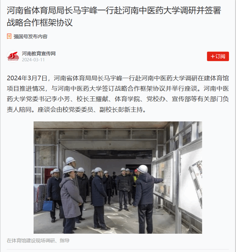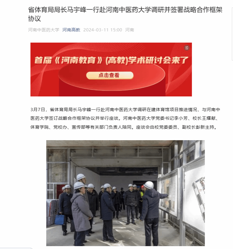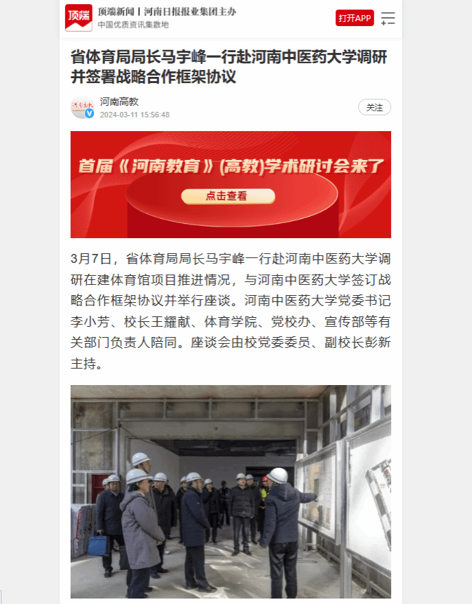 河南高教丨河南省体育局局长马宇峰一行赴leyu·乐鱼(中国)体育官方网站调研并签署战略合作框架协议